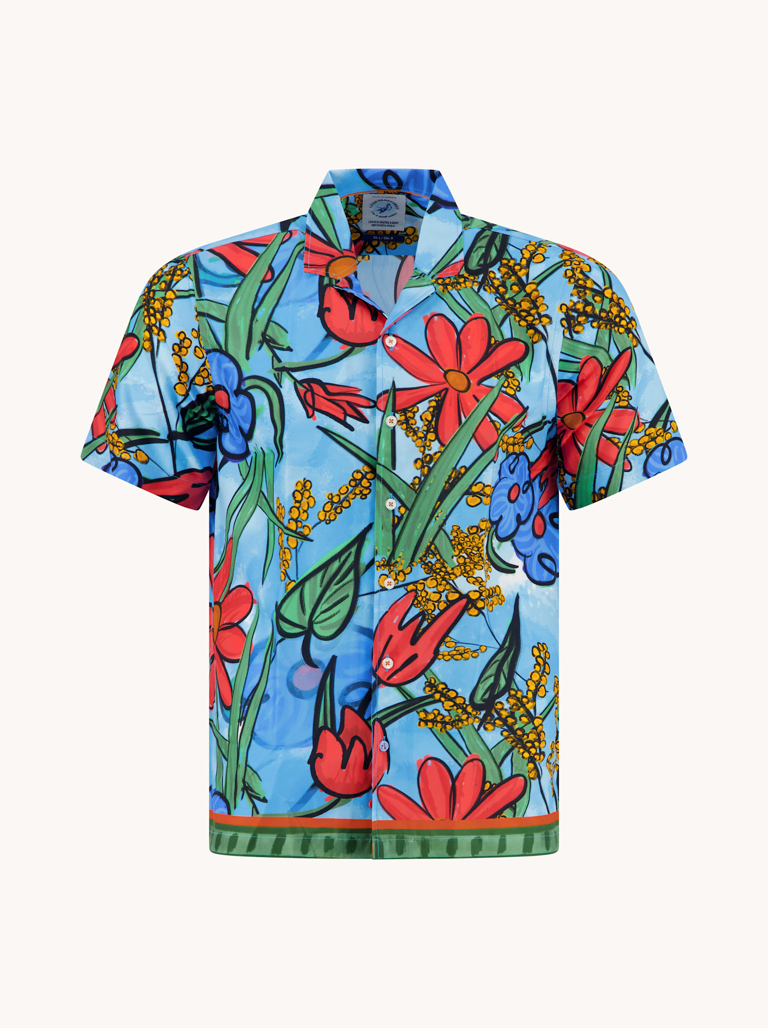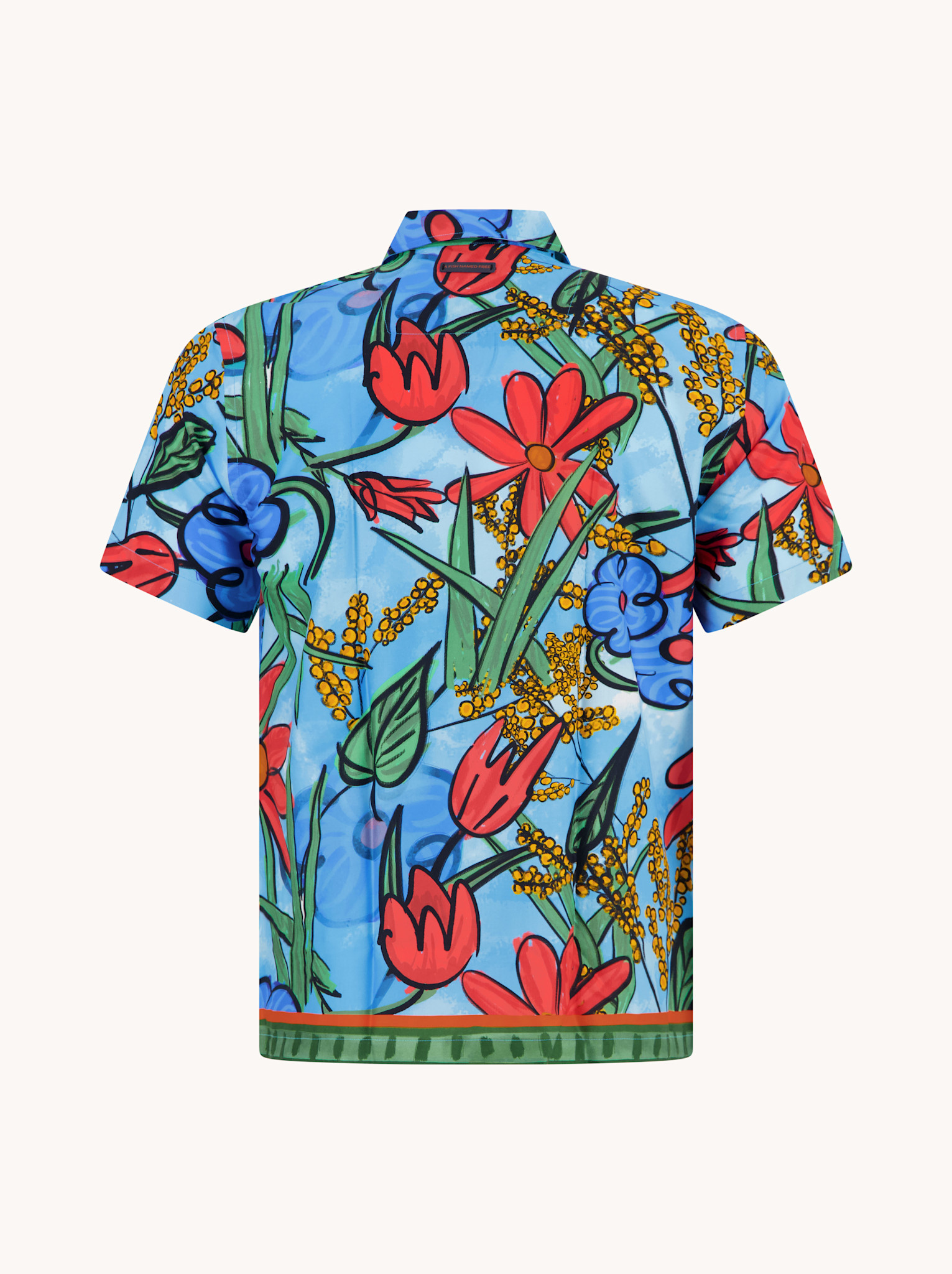 Met dit korte mouwen overhemd van A Fish Named Fred haal je de zomer in huis. De grote, kleurrijke bloemenprint op een frisse blauwe basis zorgt voor een uitgesproken look zonder dat het te druk wordt.