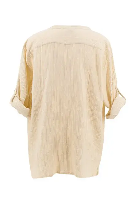 De Blouse Niguel Ecru, gemaakt van 100% katoen, voelt hij heerlijk luchtig aan en is perfect voor elke gelegenheid. Draag hem met opgerolde mouwen voor een casual vibe of combineer met een strakke jeans voor een stijlvolle touch.
