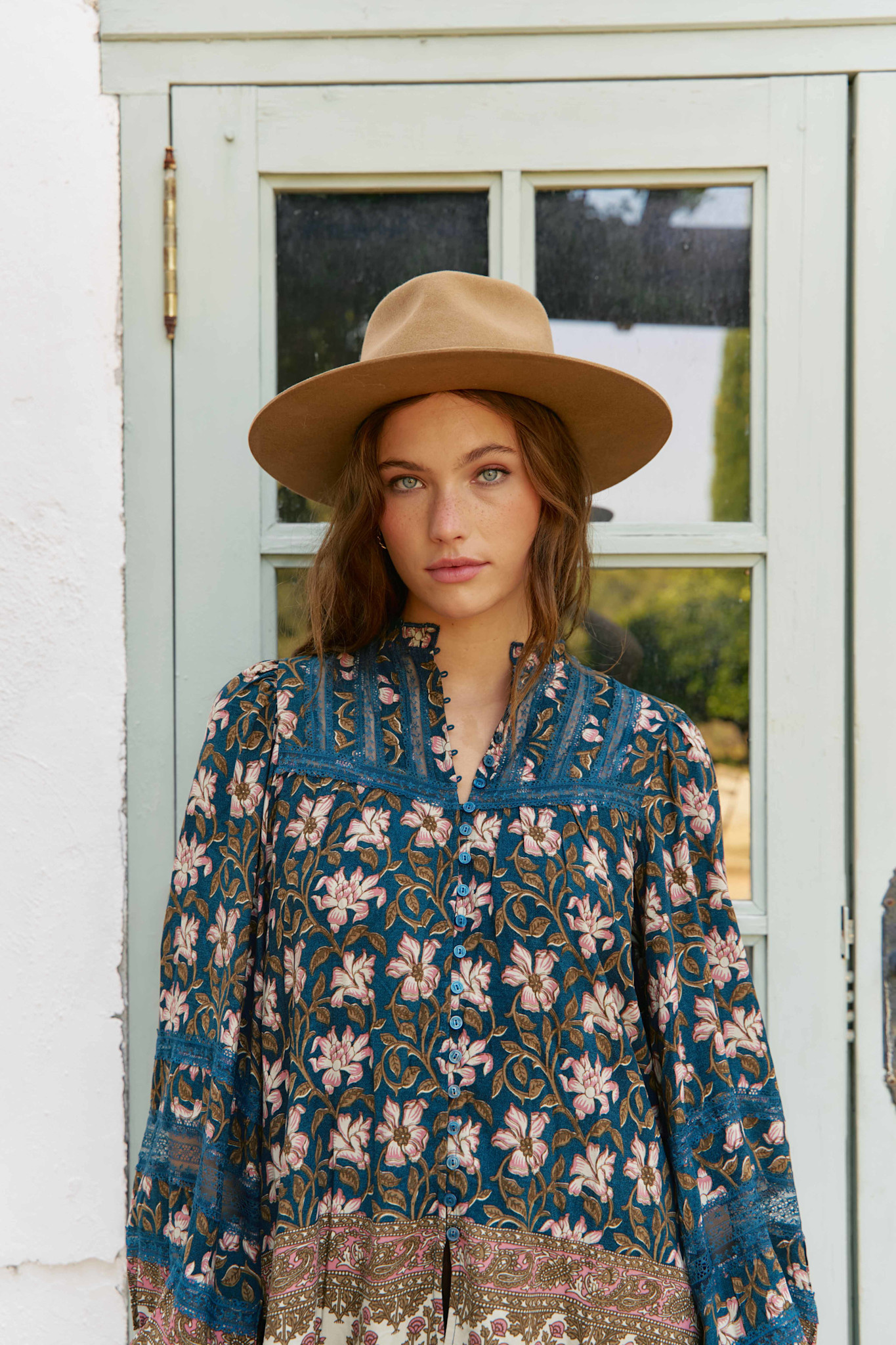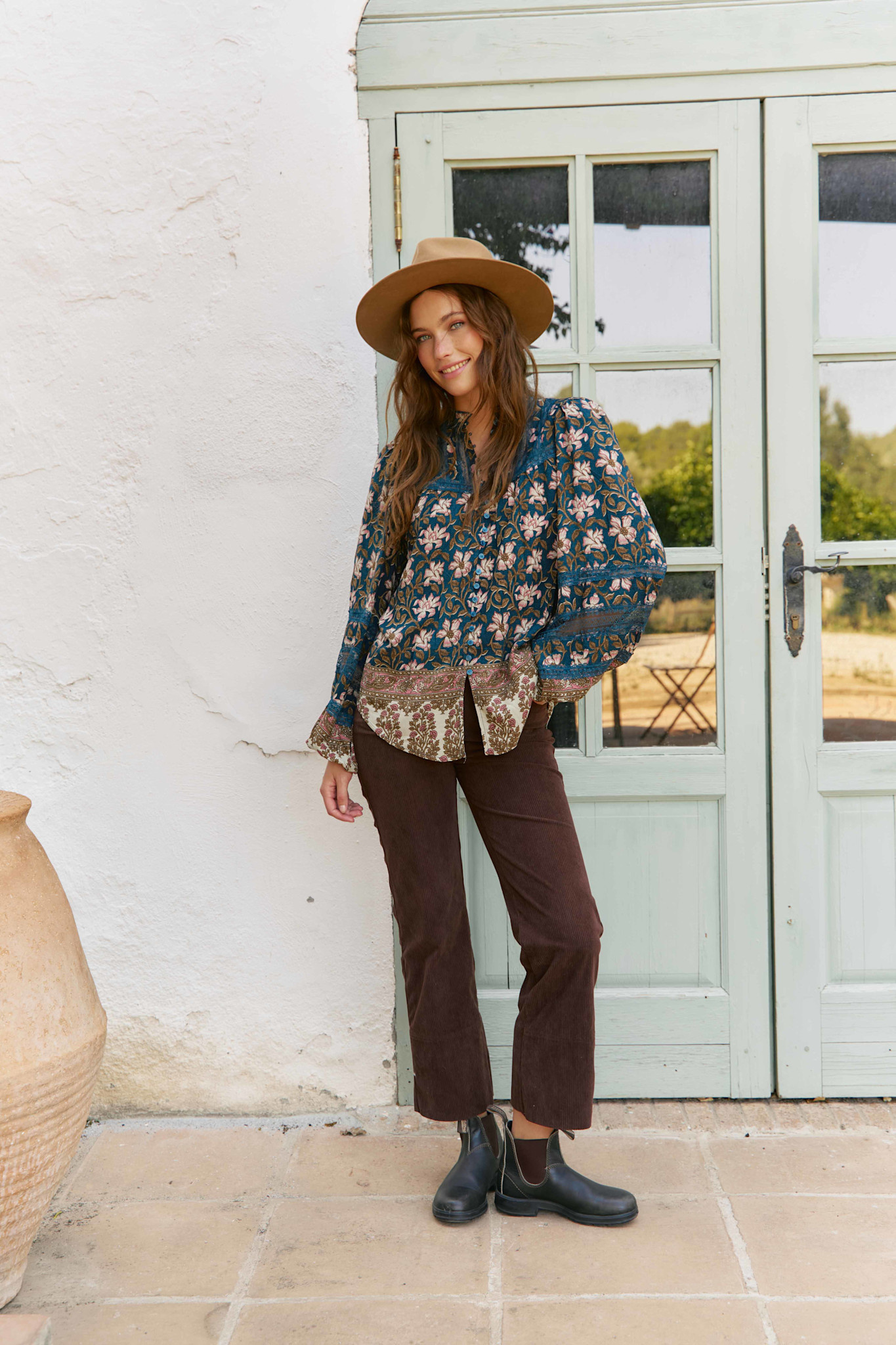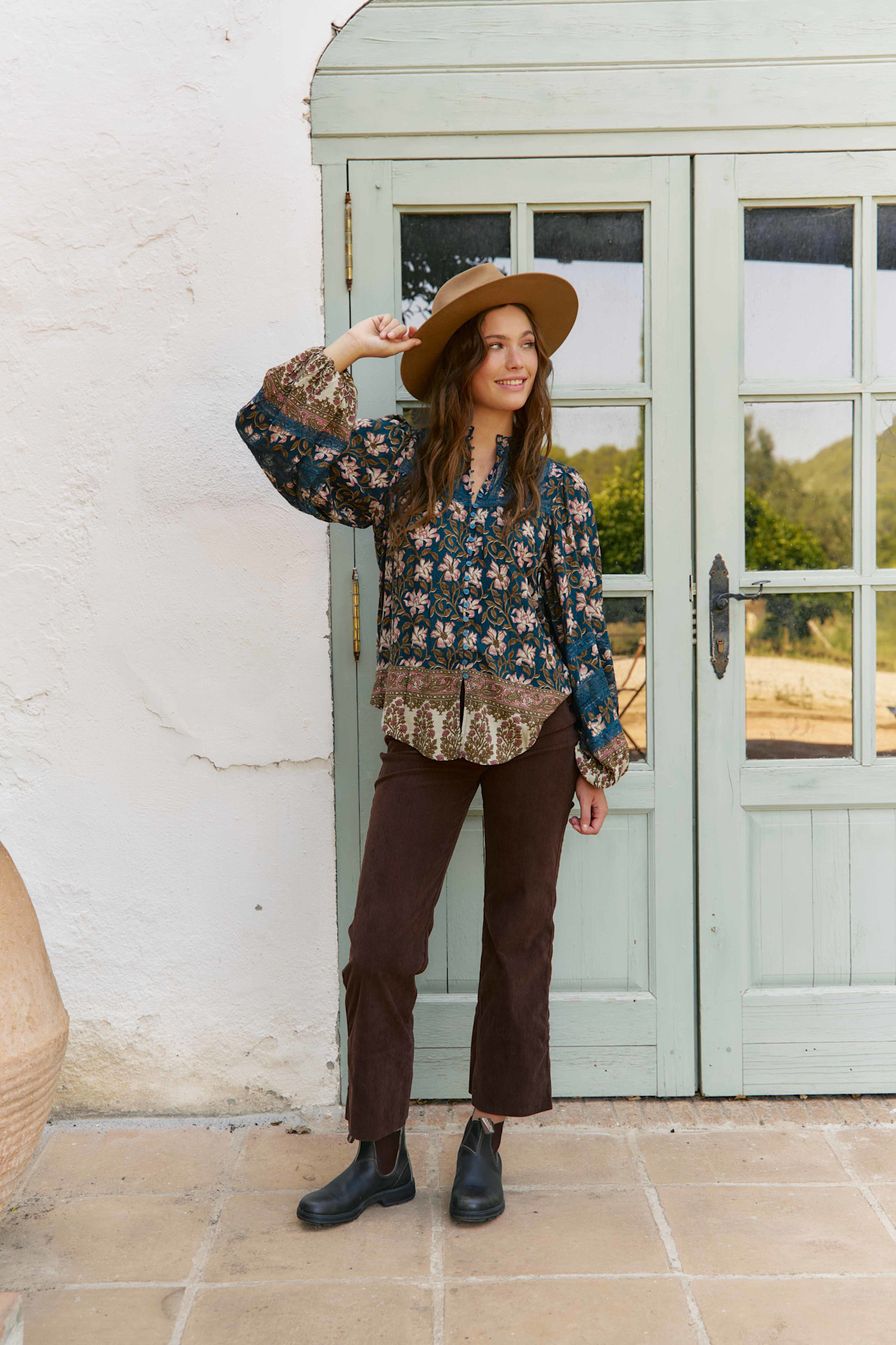 De blouse Nomade Nadia van het merk Jaase is een volledig doorgeknoopte blouse met een klein opstaand boordje. De blouse heeft een mooie paisley en bloemenprint en is afgewerkt met opengewerkte borduursels.