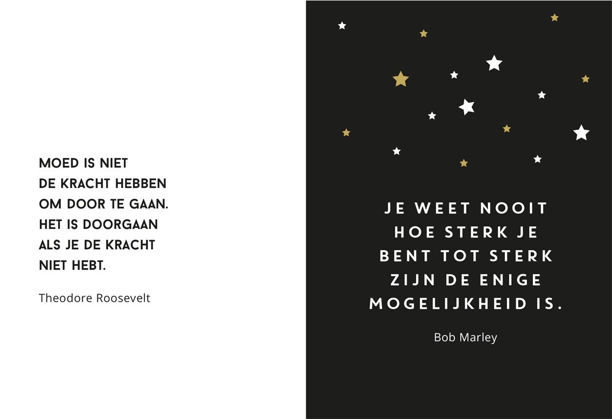 Wees sterk! Dit boekje staat vol motiverende en inspirerende quotes die je helpen om met frisse energie vooruit te kijken. Het luxe omslag met goudfolie geeft het net dat beetje extra.
