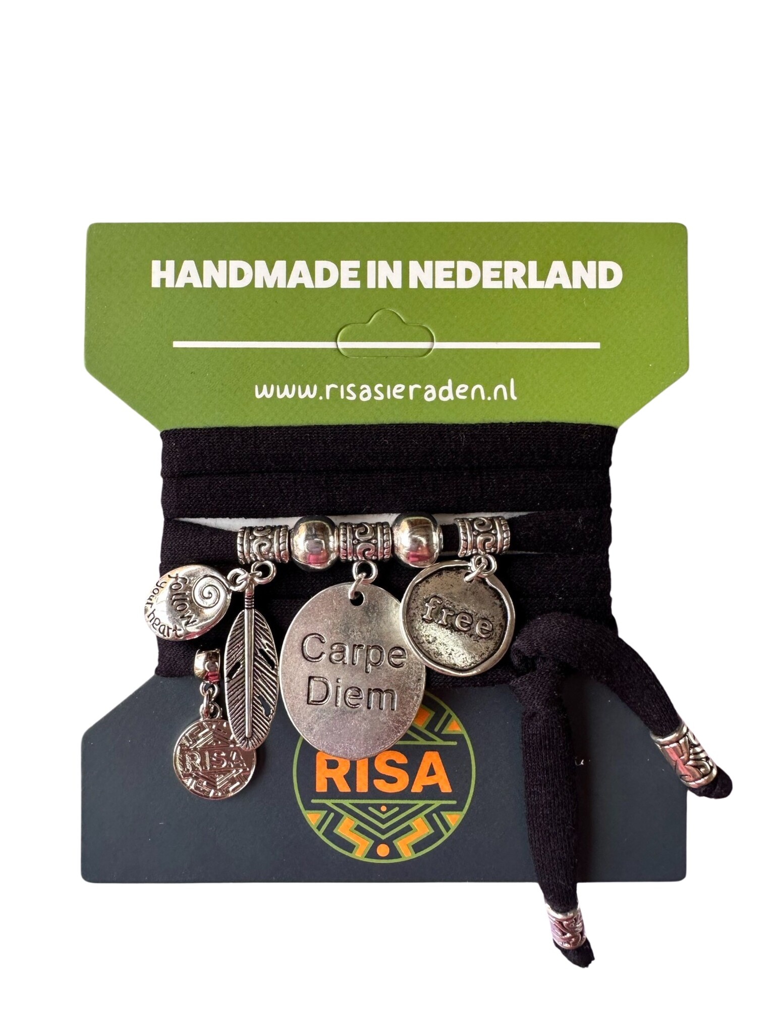 Wikkelarmband Carpe Diem Zwart - Zilver | Risa