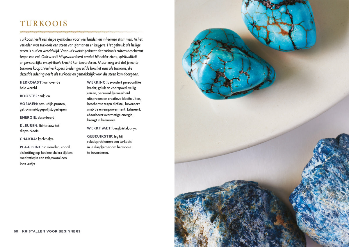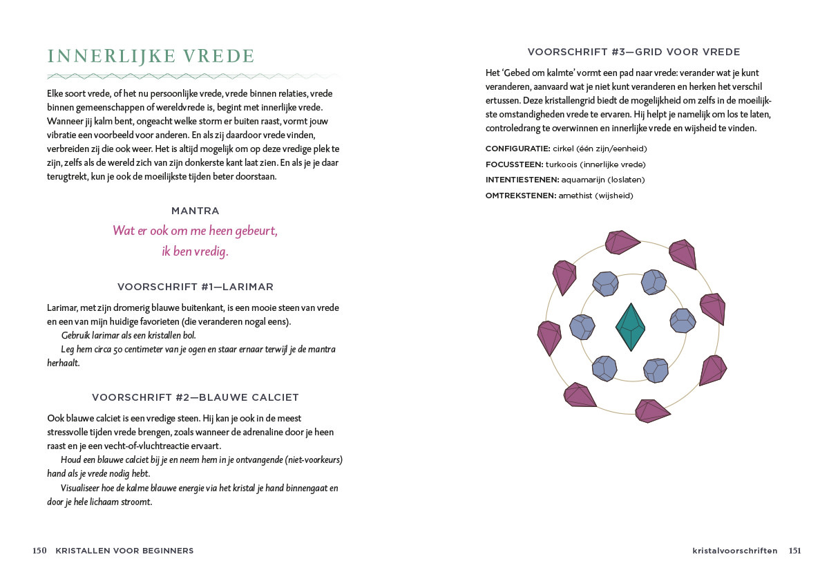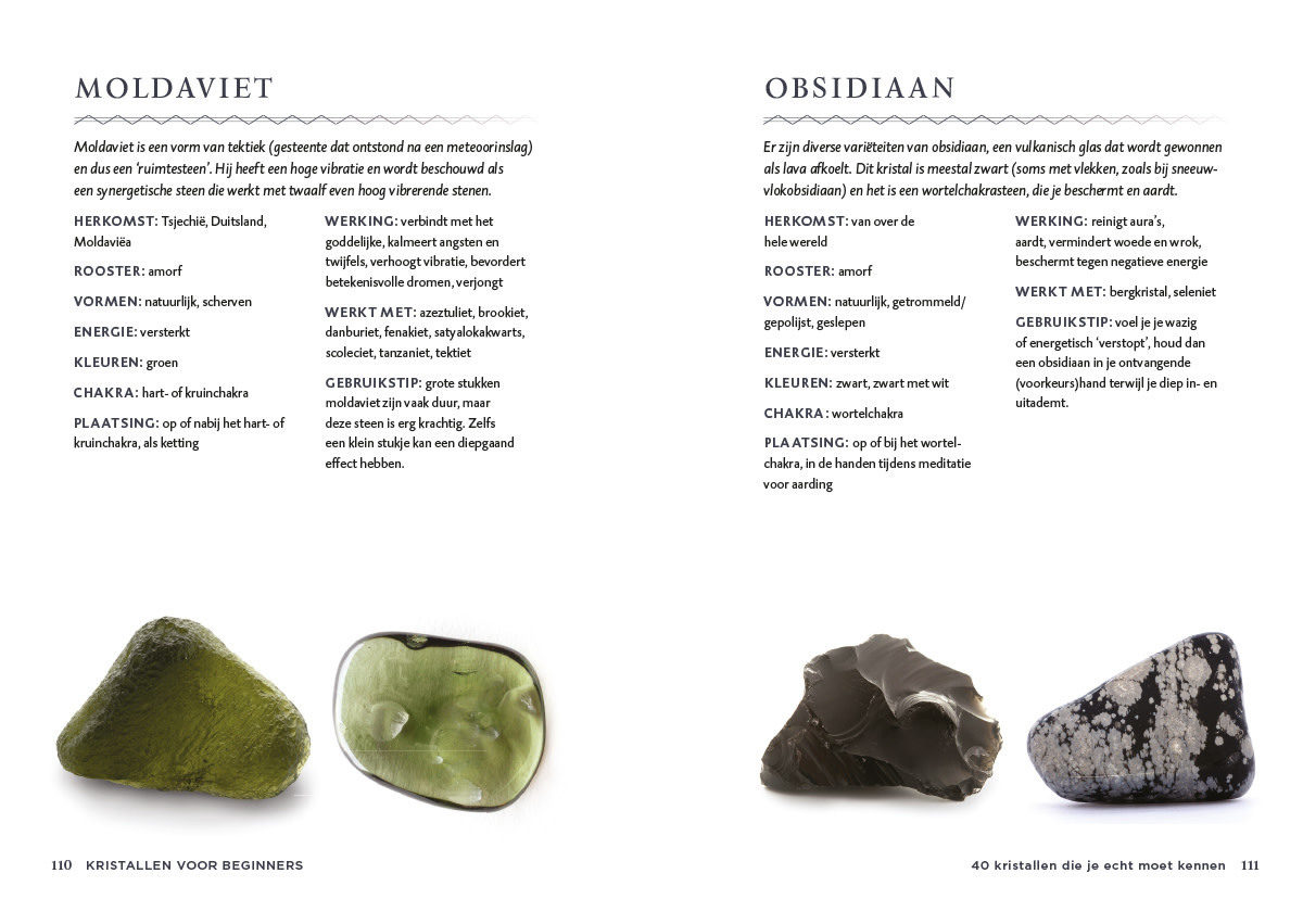 Dit boek laat zien hoe je de kracht van kristallen in kunt zetten voor je dagelijks welzijn. Het boek bestaat uit twee delen: kristalprofielen, bestaande uit een uitgebreide kennismaking met 50 verschillende kristallen, en kristalvoorschriften, bestaande uit 75 voorschriften die stap-voor-stap instructies bevatten voor de aanpak van allerlei kwesties, zoals verslaving, depressie, geluk of liefde.