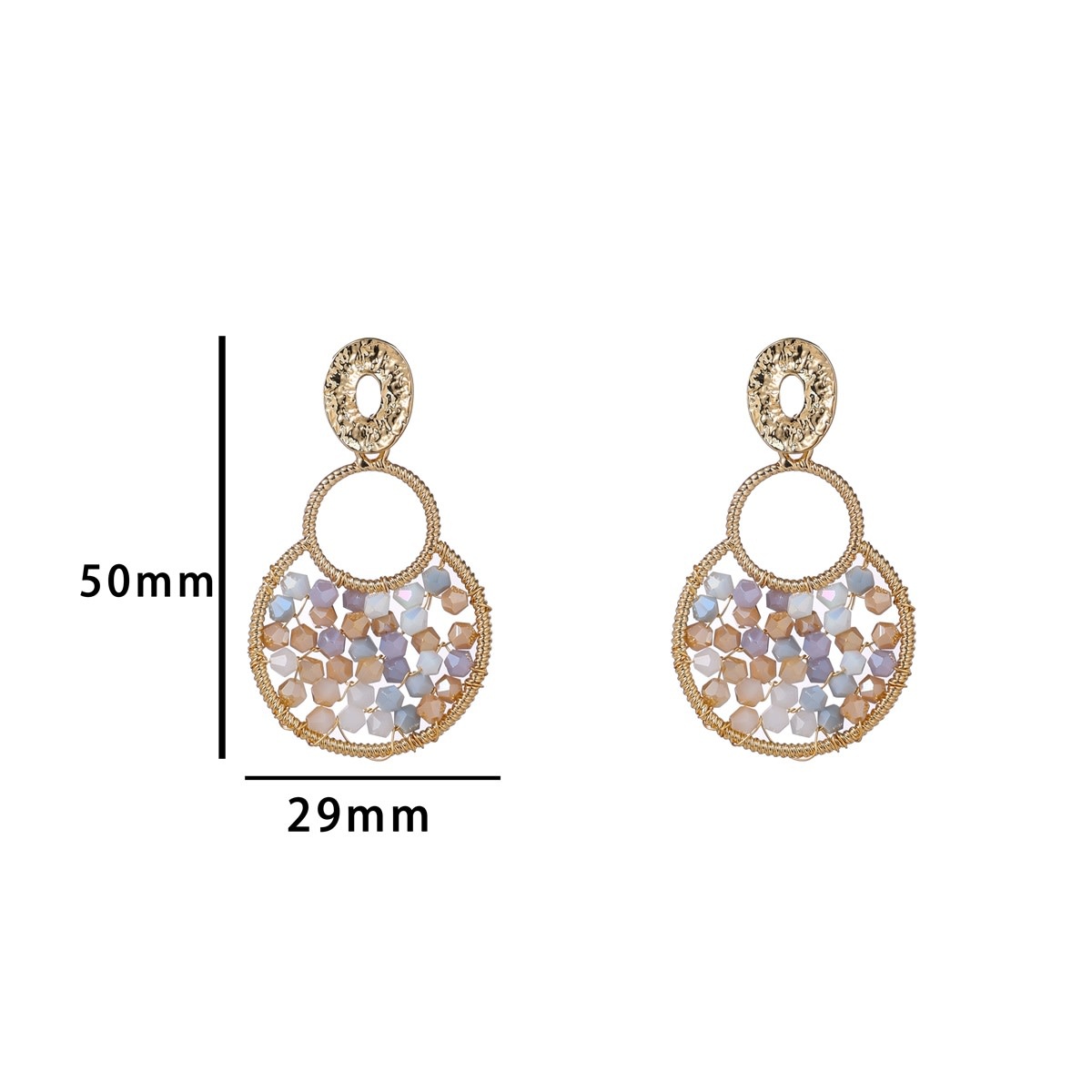 Oorhangers Big Beaded Round Blue Beige | Day & Eve