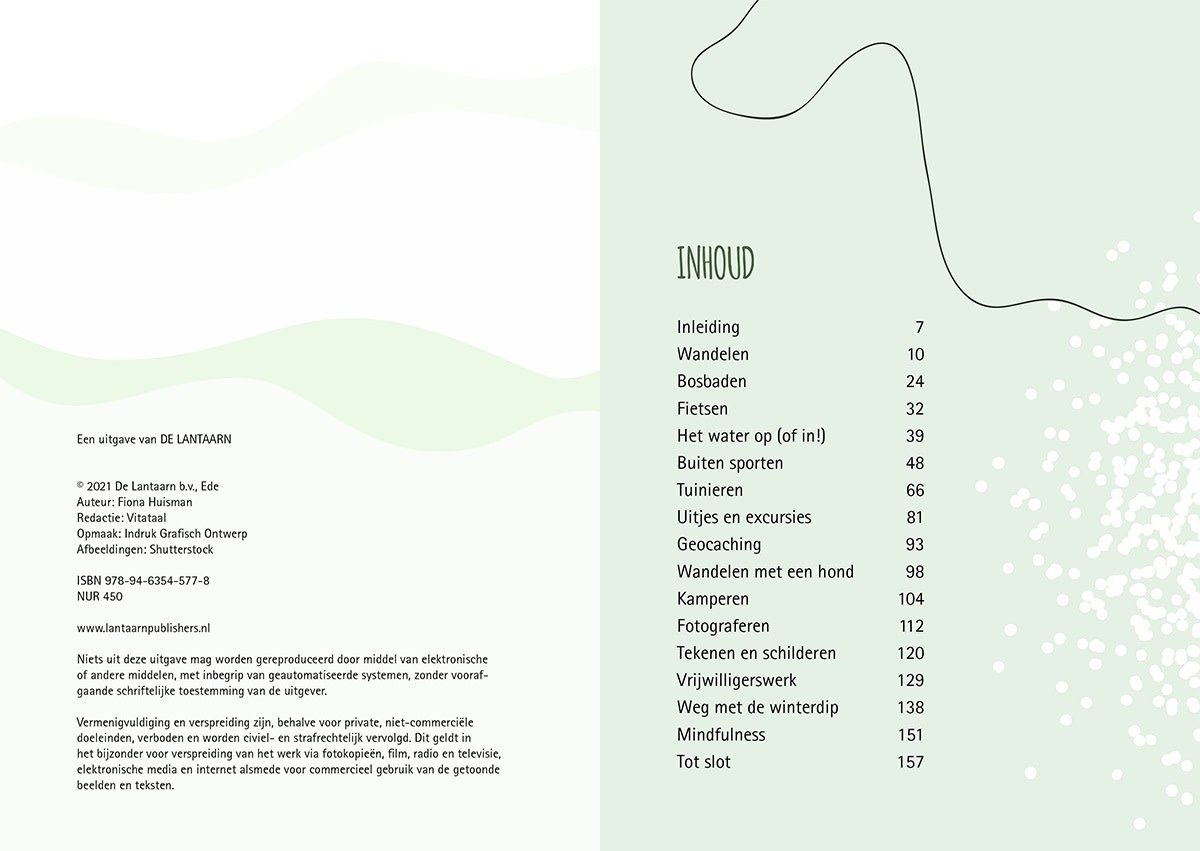 Eigenlijk weet je het wel: je zou meer naar buiten moeten. Want naar buiten gaan is gezond, het ontstrest, en er is buiten nu eenmaal meer te beleven dan binnen. Maar hoe vind je nu iets leuks om buiten te doen? Of je nu een sportieveling bent of juist helemaal niet, in dit boek vind je talloze ideeën om meer naar buiten te gaan, van een klimbos tot buitenkunst, van wandelen tot bosbaden. Ook voor jou is een activiteit te vinden die ervoor zorgt dat je meer buiten komt, zodat ook jij je kunt ontspannen en van de frisse buitenlucht kunt genieten!