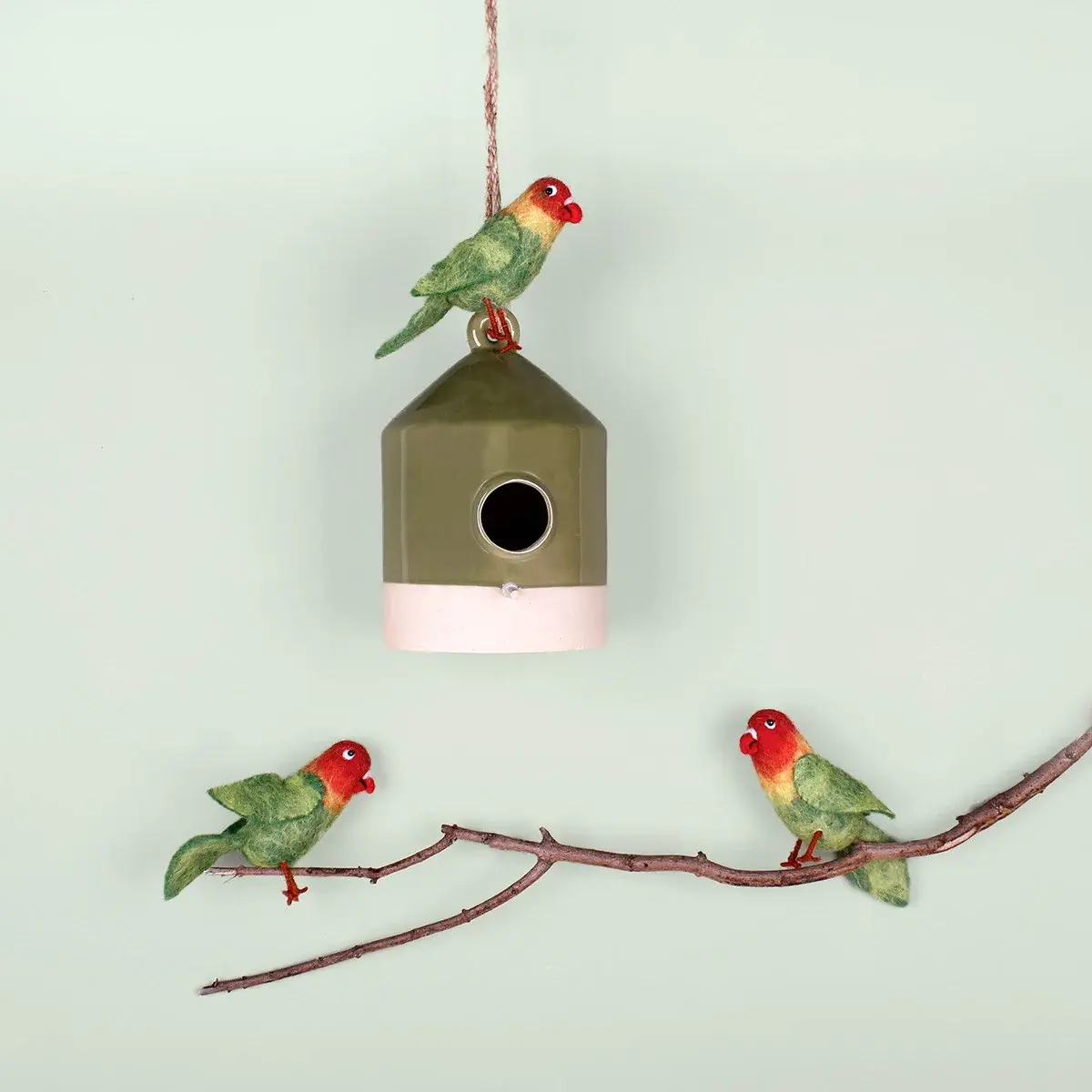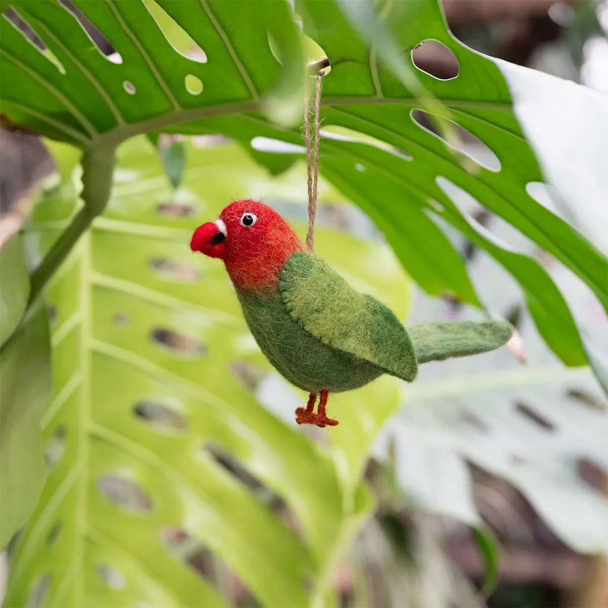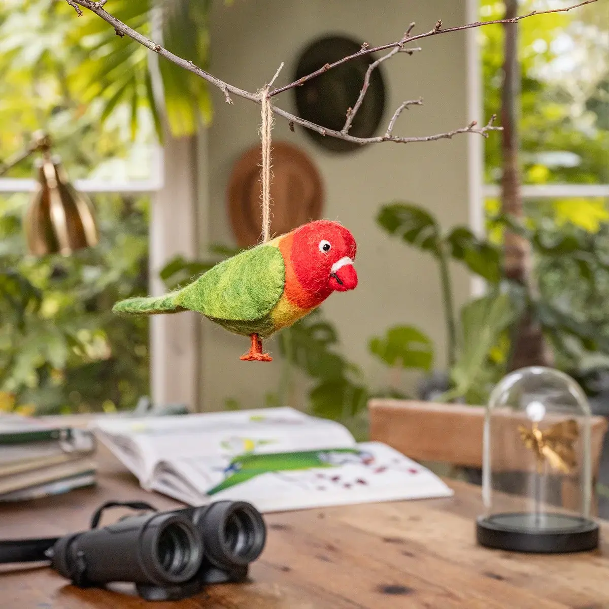 Deze vilten dwergpapegaai is een kleurrijke decoratie met een speelse uitstraling. Dankzij het touwtje hang je hem eenvoudig op, bijvoorbeeld aan een tak of in een seizoenshoekje in huis.