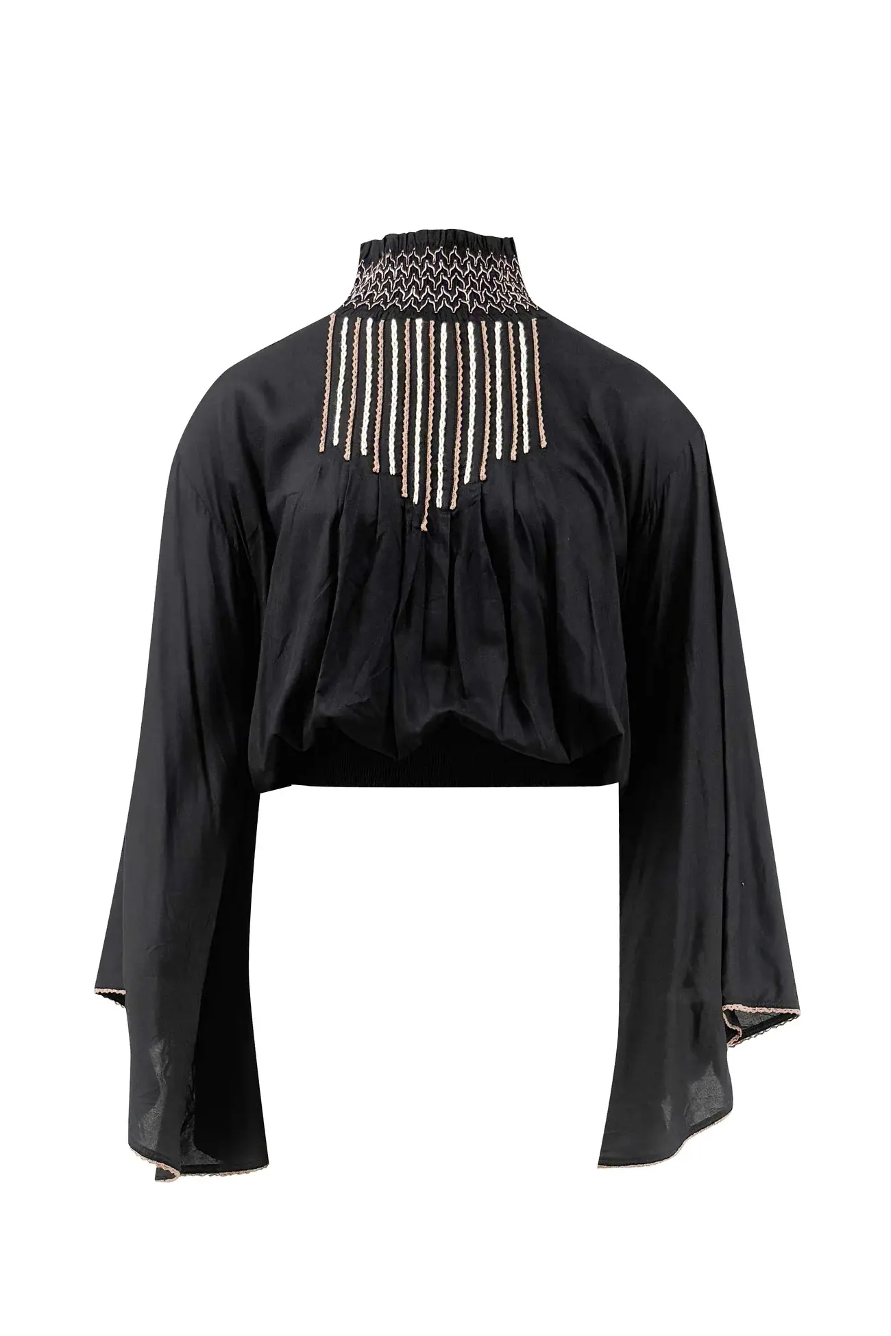 Deze stijlvolle top is perfect voor elke gelegenheid en kan zowel casual als chic gedragen worden. De zwarte kleur zorgt voor een tijdloze uitstraling en de flair mouwen geven een trendy touch aan het geheel. Gemaakt van hoogwaardige materialen voor een comfortabele pasvorm