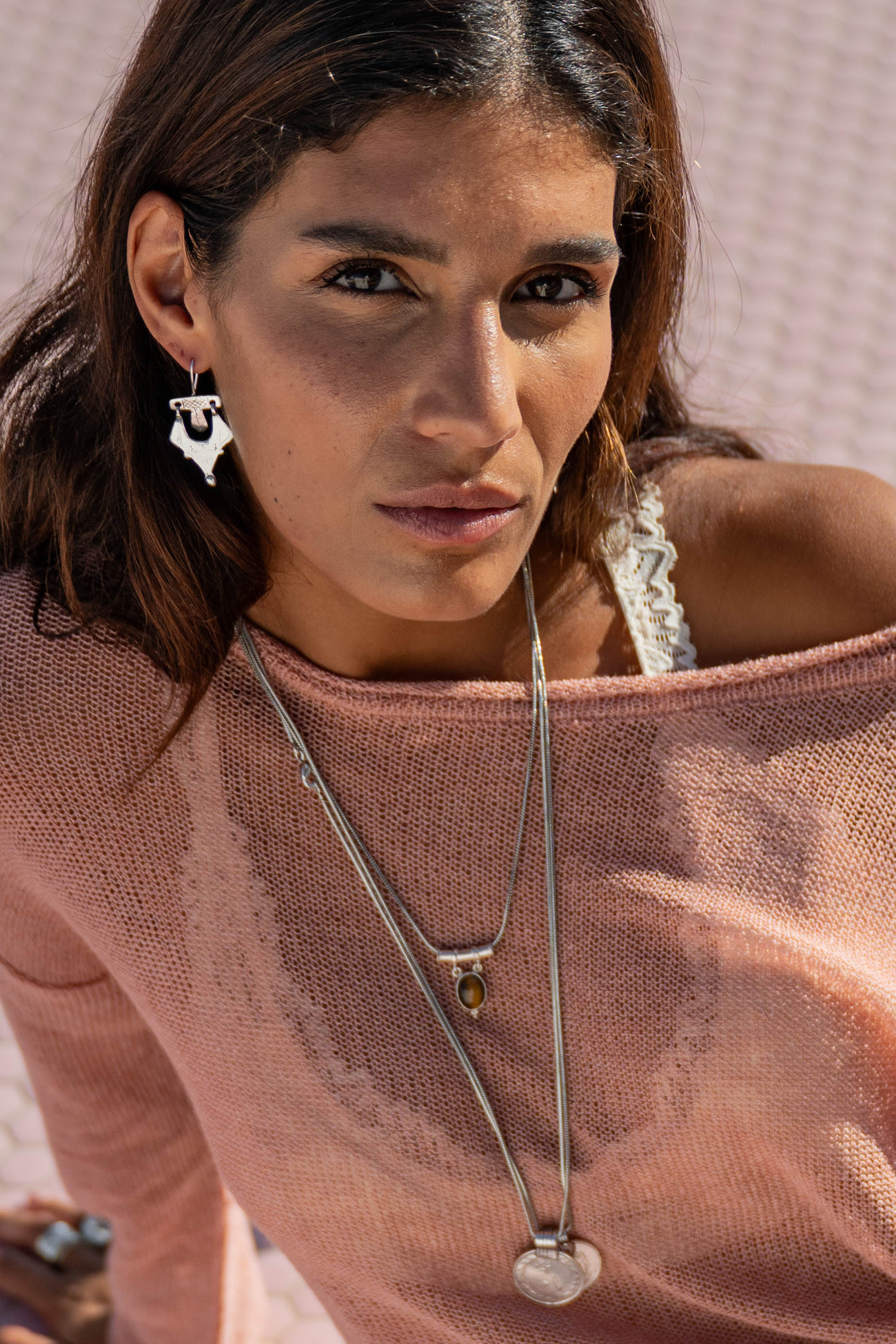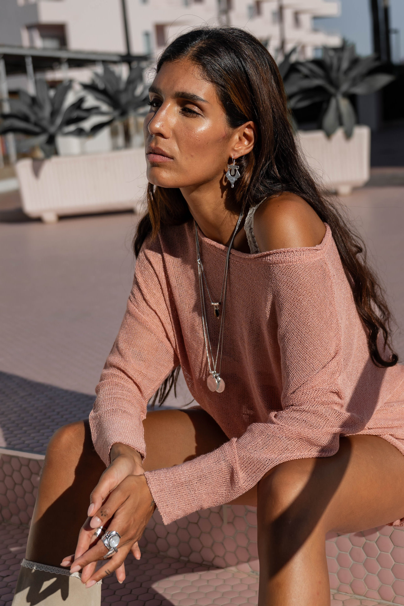 Subtiele opengewerkte details zorgen voor een lichte see-through look: spannend en speels, zonder te bloot te worden. Zo past Milou naadloos bij de bold, bohemian en zelfverzekerde Destination Pink vibe van de collectie.