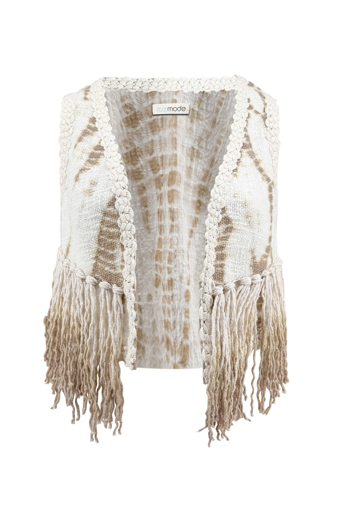 Het Gilet Naria Sera uit de Sand Stories collectie is een luchtig katoenen gilet met organische tie-dye print in taupe en ivory. Ademend en zacht, losvallend en comfortabel, ideaal voor stranddagen, zomerse avonden of een relaxte Ibiza-look. Combineer over top, jurk of co-ord set voor een stijlvolle, gelaagde outfit.