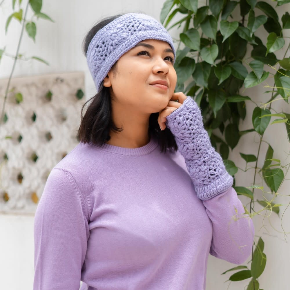 Warme gehaakte handwarmers uit Nepal in zacht lila. Het klassieke granny square-patroon geeft ze die echte handgemaakte uitstraling. De binnenkant is gevoerd met fleece, zodat je handen lekker warm blijven, zelfs op koude dagen. Dankzij de open vingers kun je alles blijven doen – van appen tot een kop thee vasthouden.