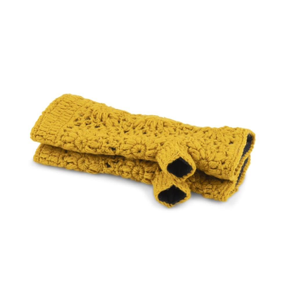 Gehaakte wollen handwarmers uit Nepal in de kleur okergeel. Lees meer