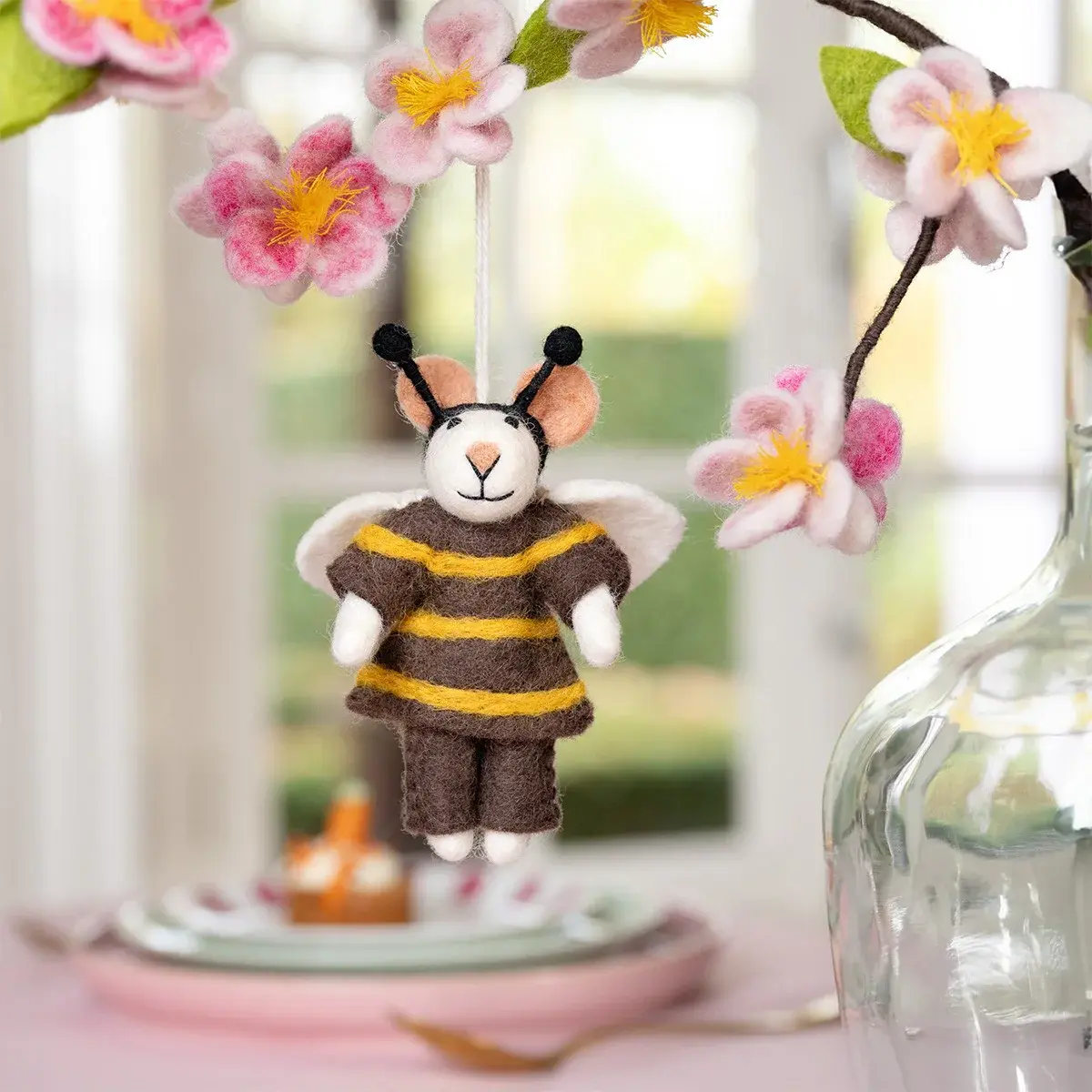 Deze Vilten Muis Bijtje is een schattige hanger met bijenkostuum. Leuk als speels decoratie-item voor in huis, aan een tak of in een seizoenshoekje.