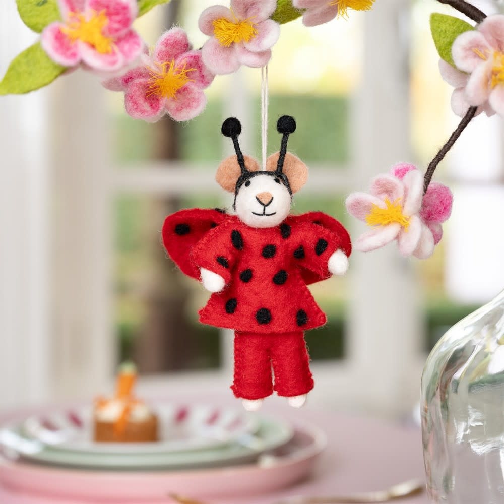 Hanger van een vilten muis verkleed als lieveheersbeestje. Leuk als decoratie in huis.