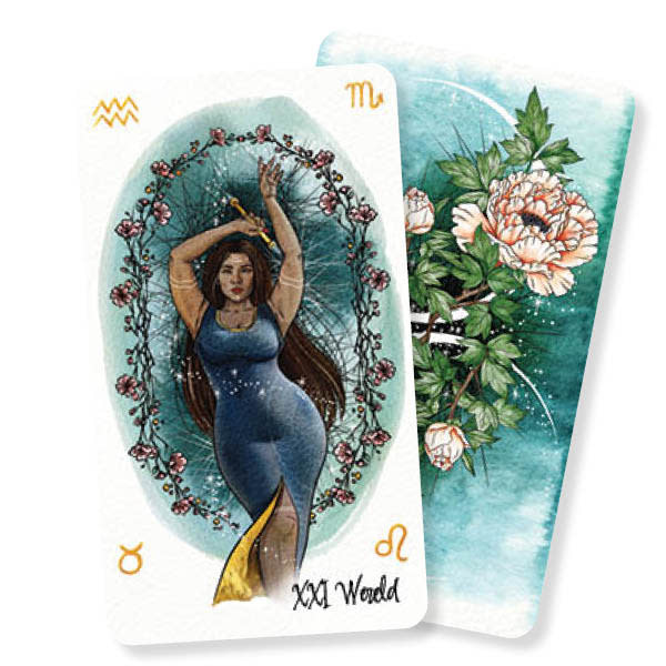 Dit tarotdeck bevat 78 kaarten: 22 Grote Arcana en 56 Kleine Arcana-kaarten, verdeeld over vier kleuren. De kaarten hebben het klassieke tarotformaat en zijn gedrukt op stevig 350 g/m² karton met een zachte matte afwerking. Deze hoogwaardige materialen zorgen ervoor dat de kaarten lang meegaan en prettig in de hand liggen.