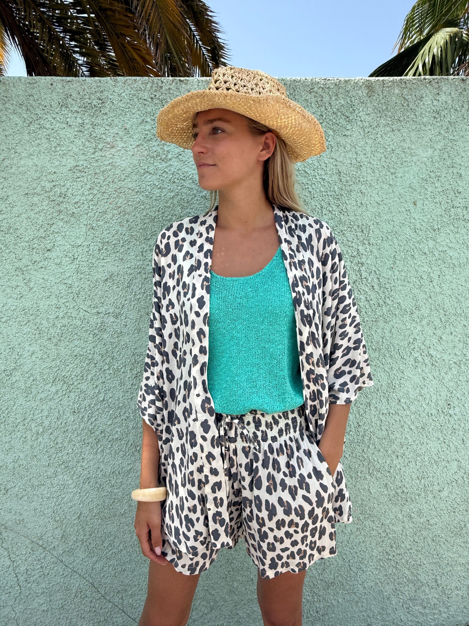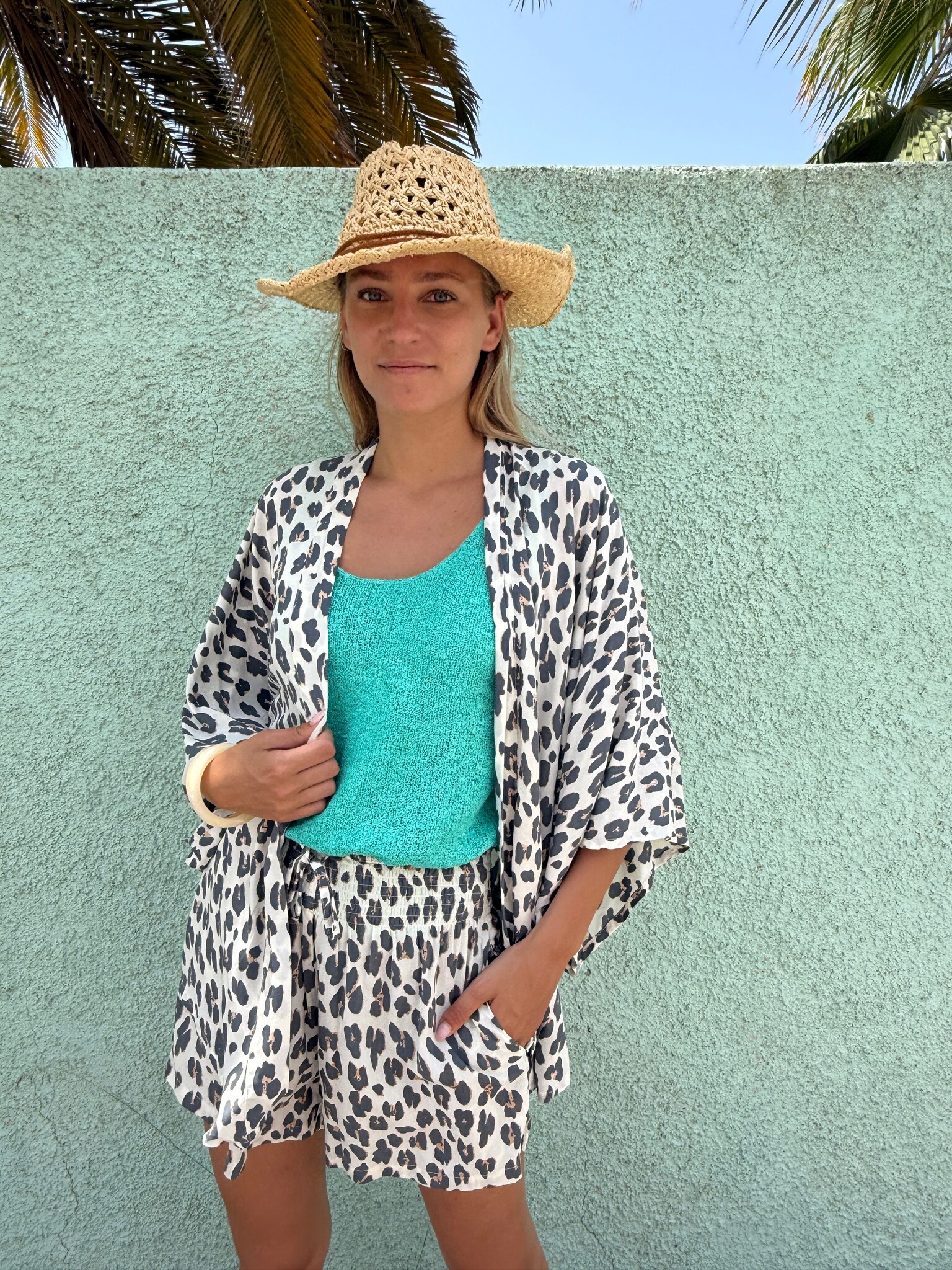 De kimono Tokyo King Leo van het merk Bindi is een luchtig, losvallend model in een leopard print. De kimono heeft halflange mouwen.