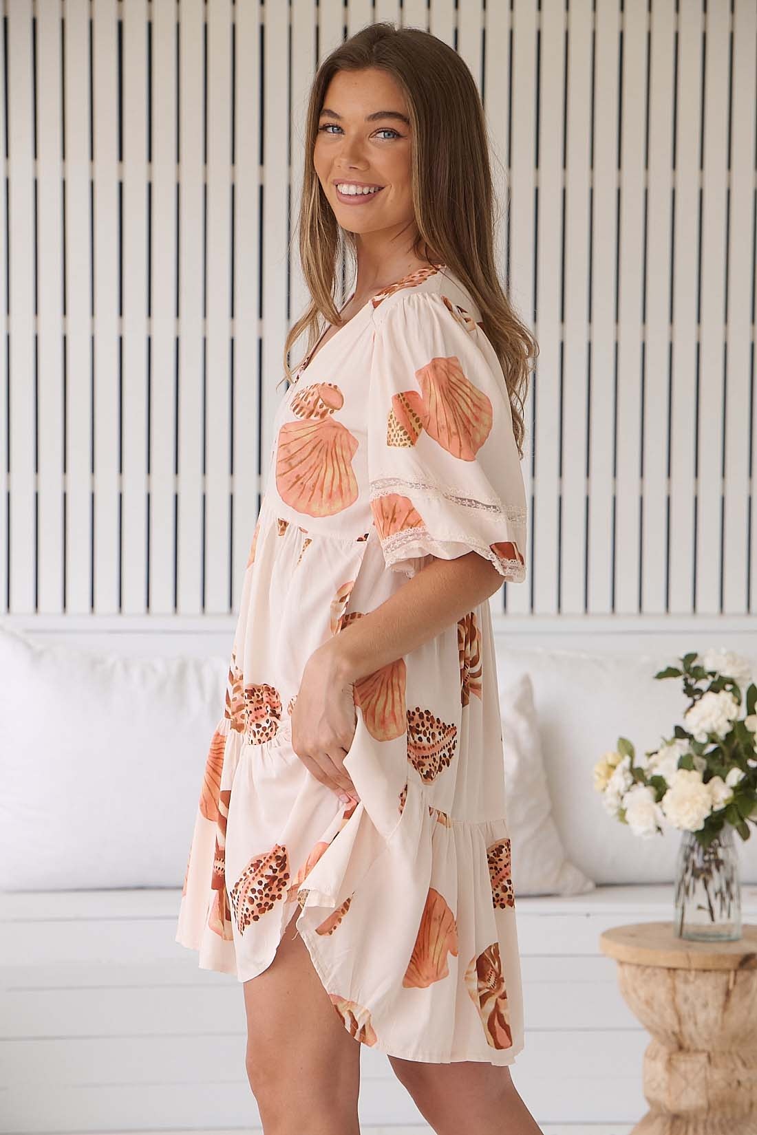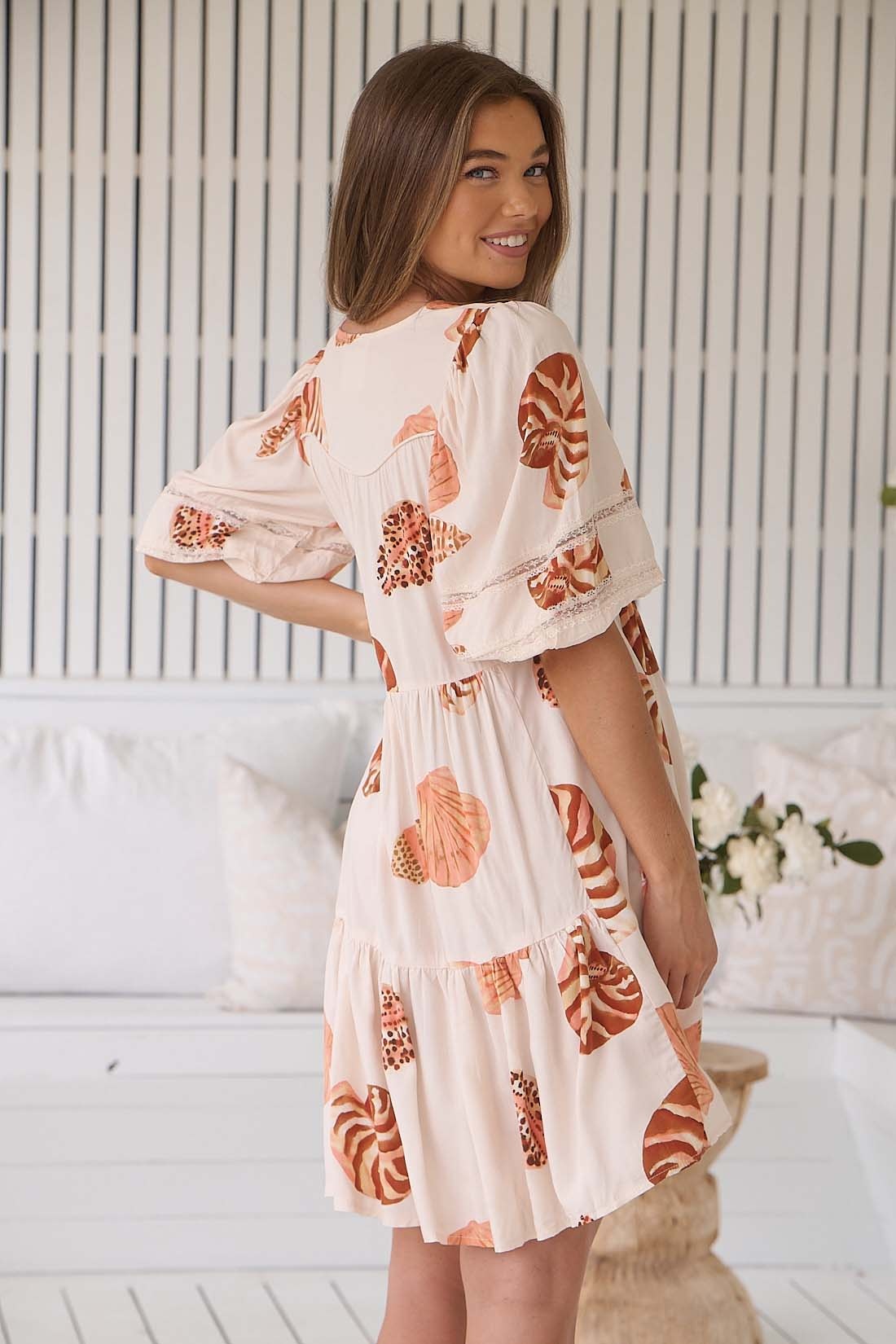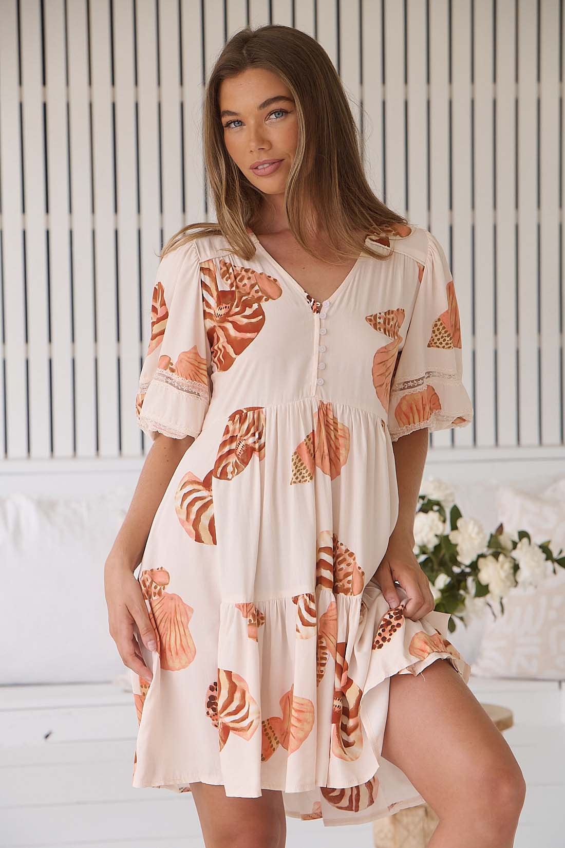 De korte jurk Marcel Hippie van het merk Jaase is een zomerse boho jurk. De jurk heeft een v-hals met knoopjes en korte opengewerkte mouwen. De jurk loopt iets wijder uit vanaf de borst. Een musthave in je garderobe.