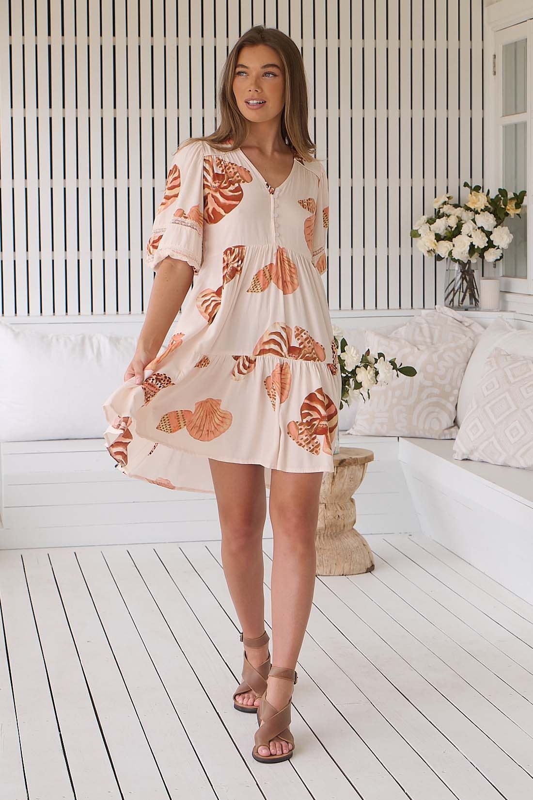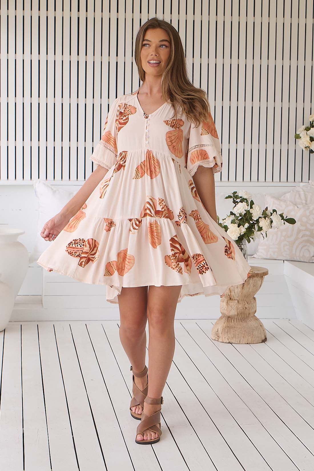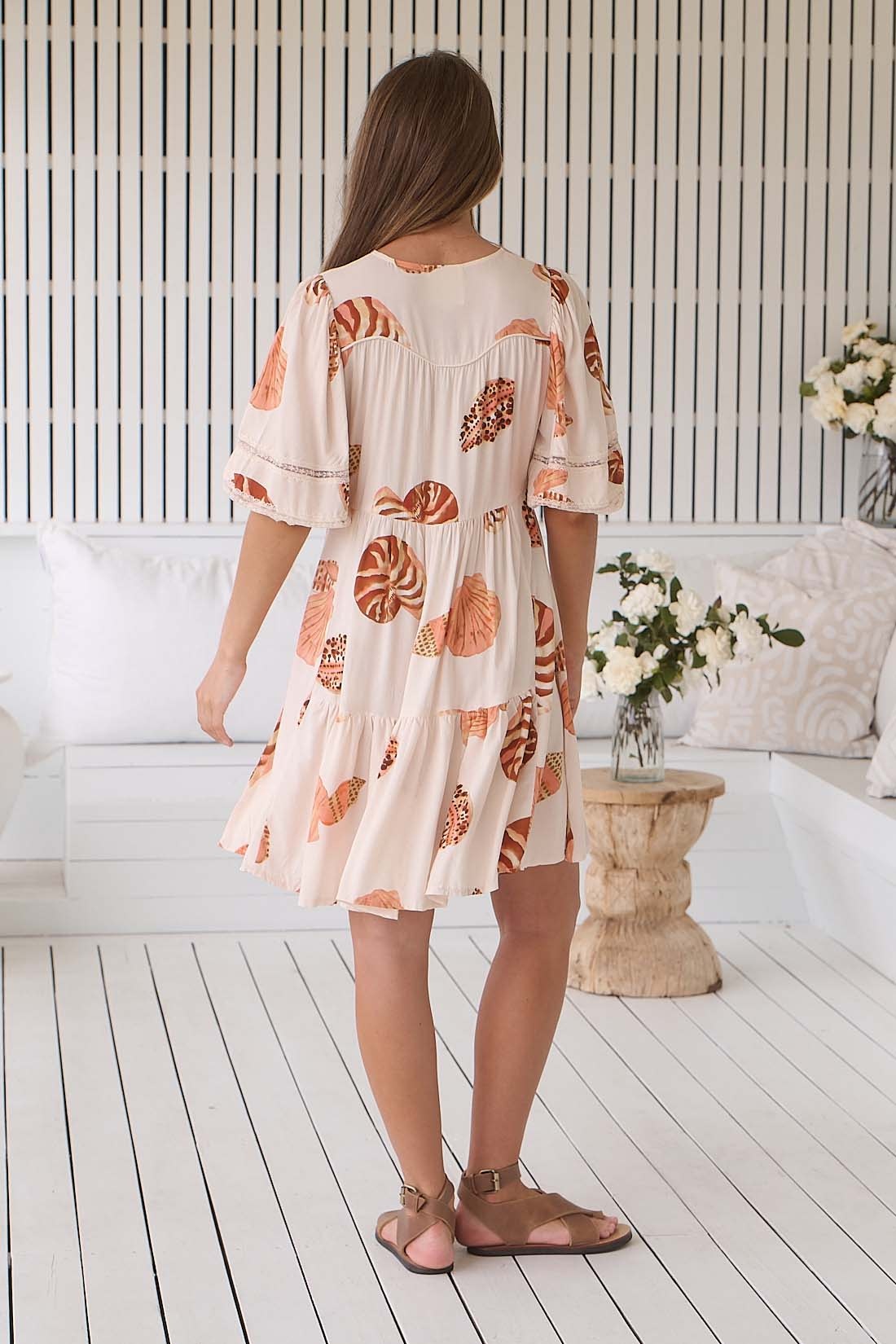 De korte jurk Marcel Hippie van het merk Jaase is een zomerse boho jurk. De jurk heeft een v-hals met knoopjes en korte opengewerkte mouwen. De jurk loopt iets wijder uit vanaf de borst. Een musthave in je garderobe.