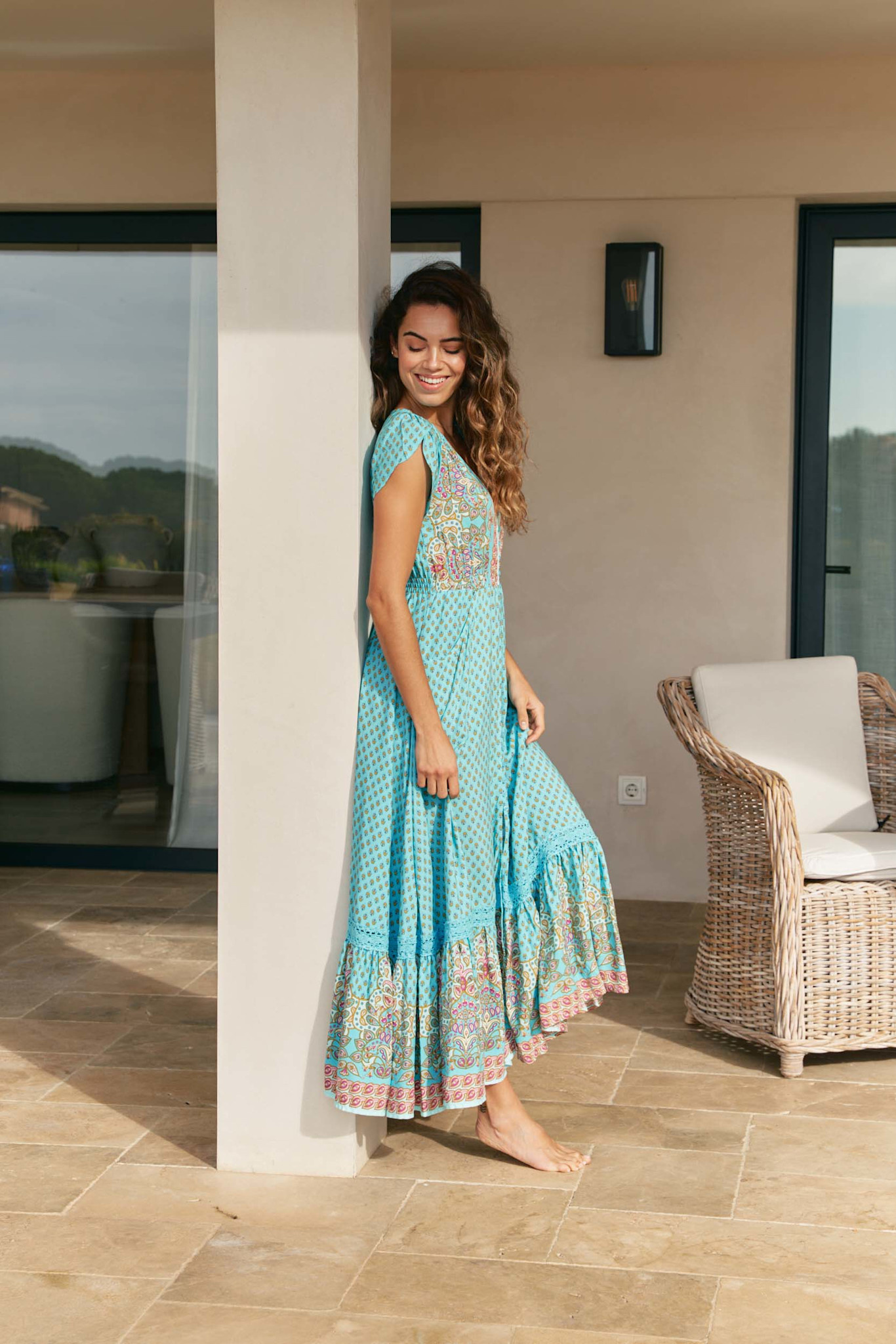 De lange jurk Atlantis Carmen van het Australische merk Jaase. Lees meer