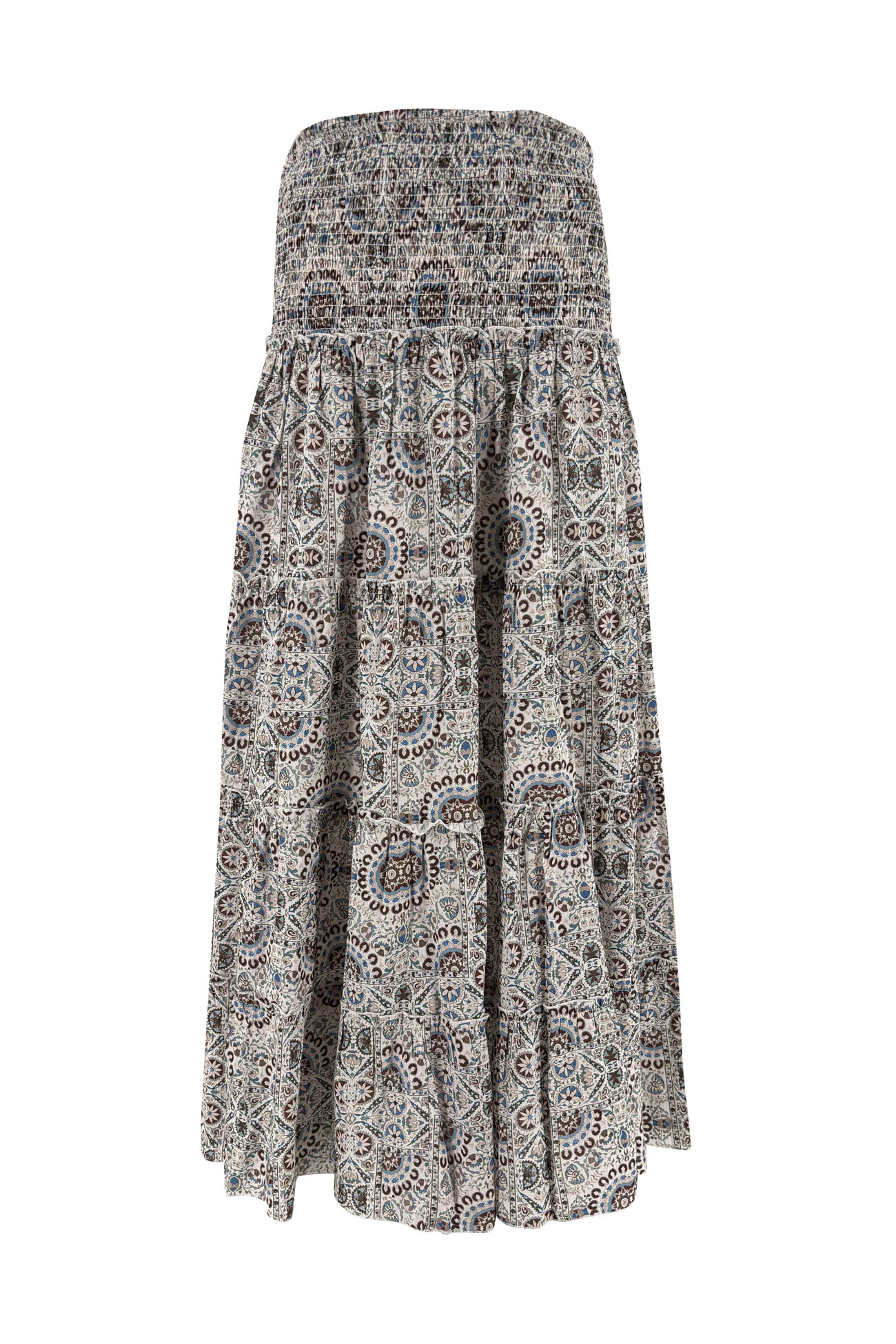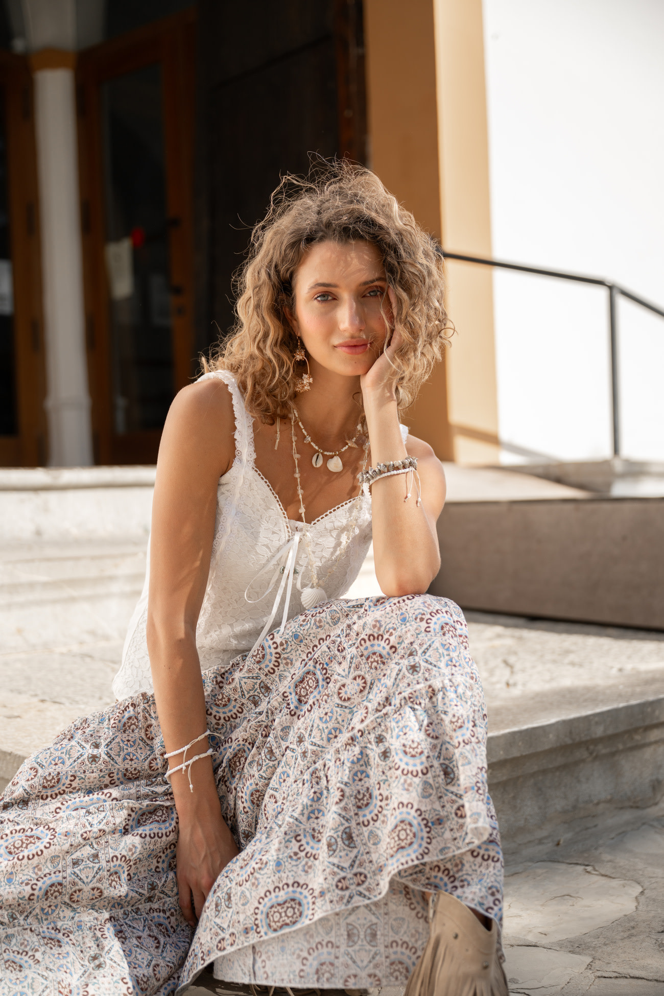 De Long Skirt Morena van Isla Ibiza is een lange bohemian rok met een rijke print in blauw en warme tinten uit de Bonita Blue collectie. De rok valt soepel langs het lichaam en beweegt licht mee bij elke stap.