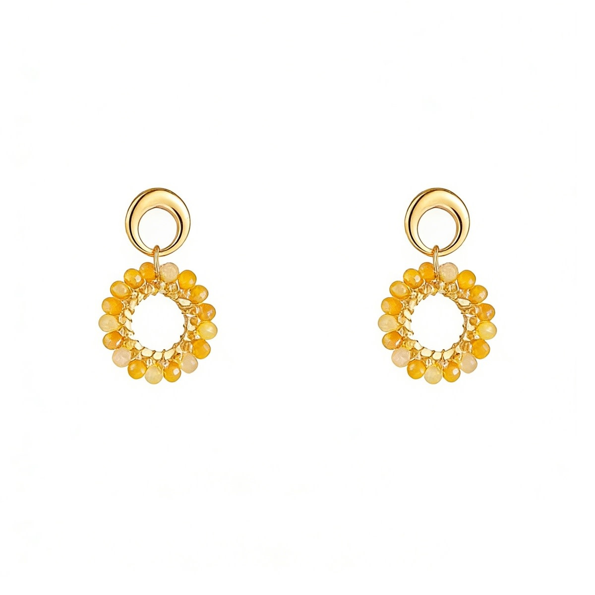 Oorbellen met een ronde hanger afgewerkt met kleine beads. De kralenrand geeft deze oorbellen een leuk detail en maakt ze makkelijk te combineren met verschillende outfits.