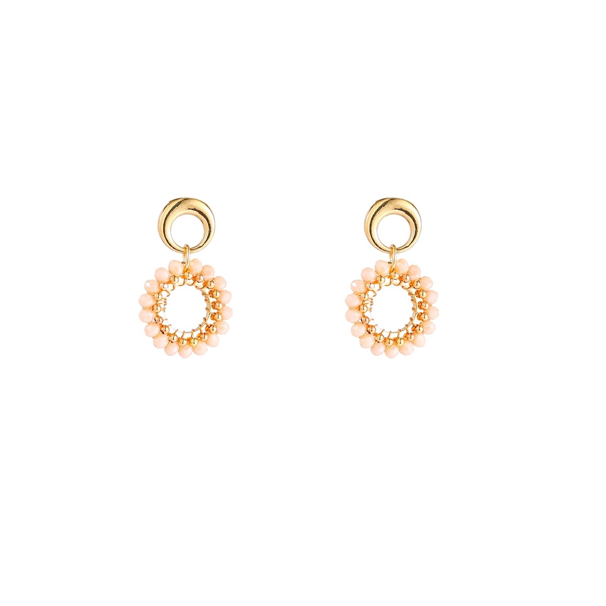 Oorbellen met een ronde hanger afgewerkt met kleine beads. De kralenrand geeft deze oorbellen een leuk detail en maakt ze makkelijk te combineren met verschillende outfits.