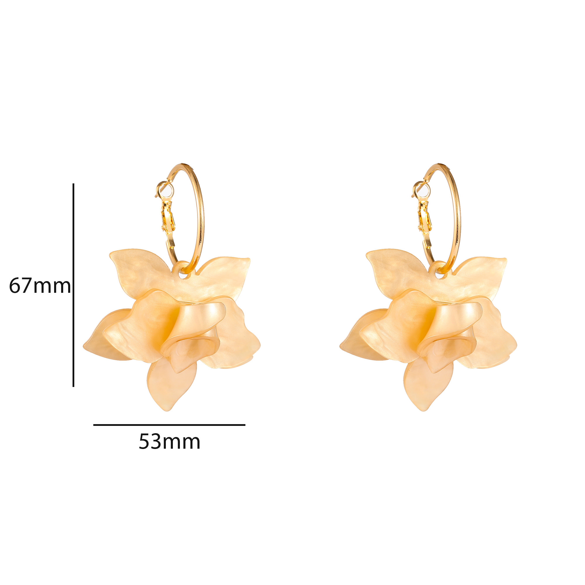 Oorringen met een bloemvormige hanger in zomerse kleuren. Met een formaat van 67 x 53mm hebben deze oorbellen een opvallend model.