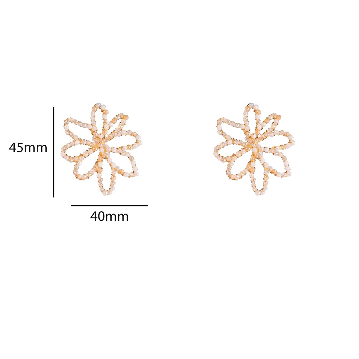 Oorbel stekers van stainless steel in bloemvorm, waarbij de vorm is bewerkt met kleine beads. Door het formaat vallen deze oorbellen goed op en zijn ze makkelijk te combineren. De afmetingen van de oorbellen zijn 45 x 40 mm.