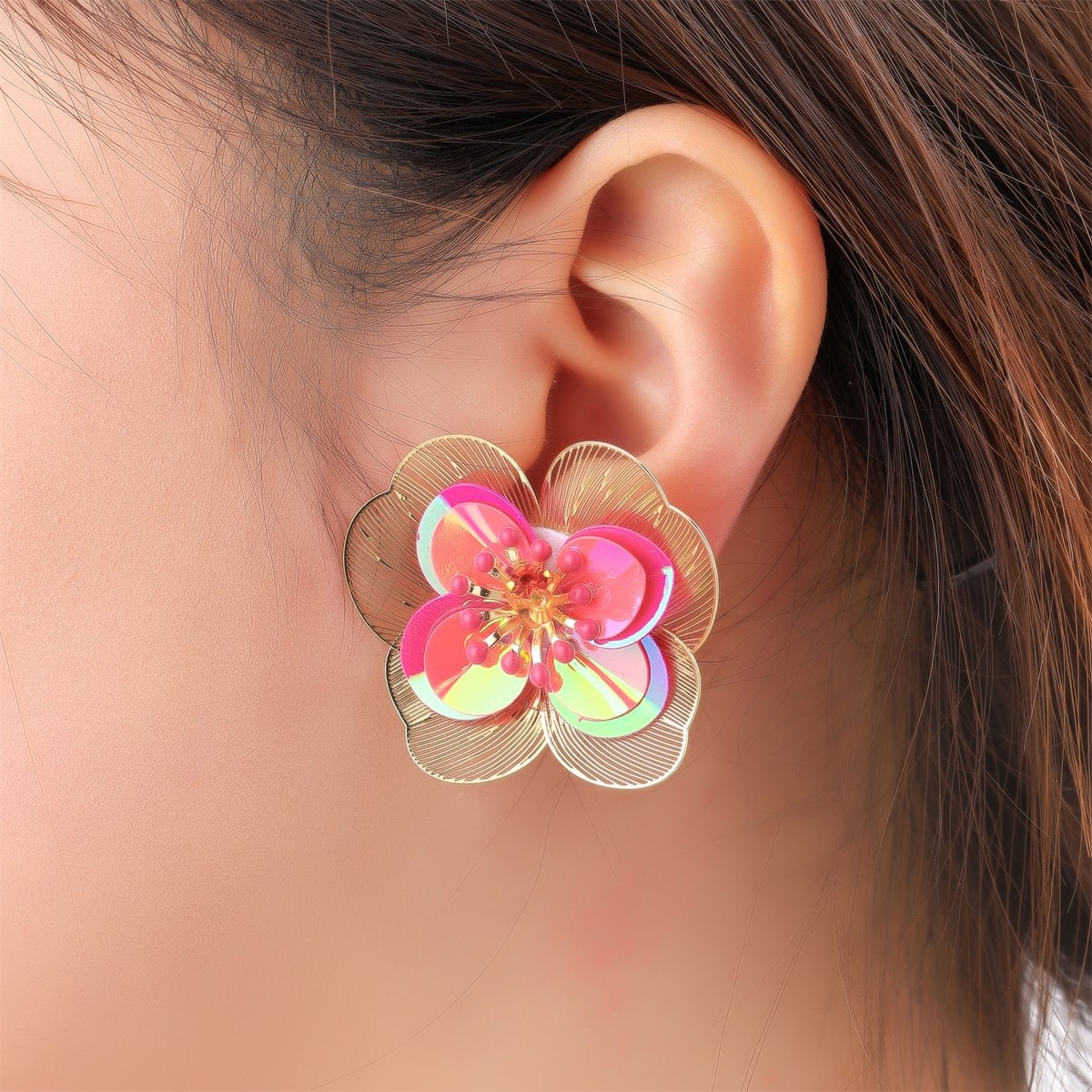 Oorbellen Big Shiny Flower Stud - Orange Plum | Day & Eve