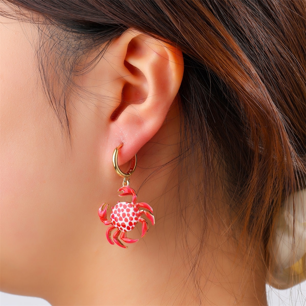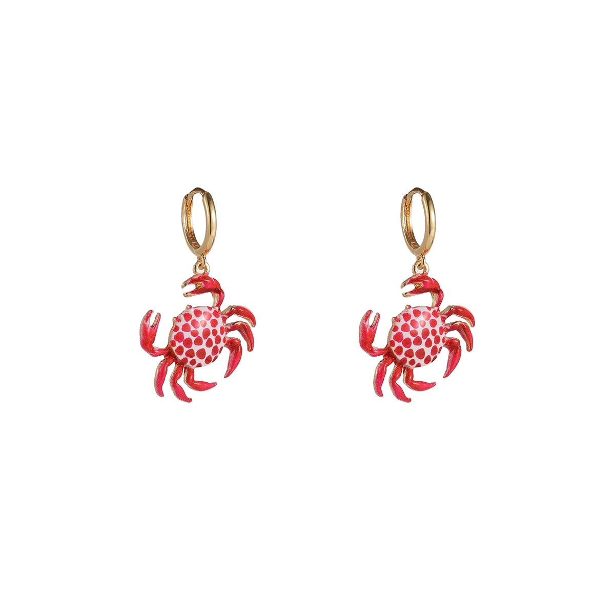 Oorbellen van stainless steel met rode krab hangers. Met een formaat van 40 x 25 mm zijn deze oorbellen een opvallend model met een speels zee-thema.