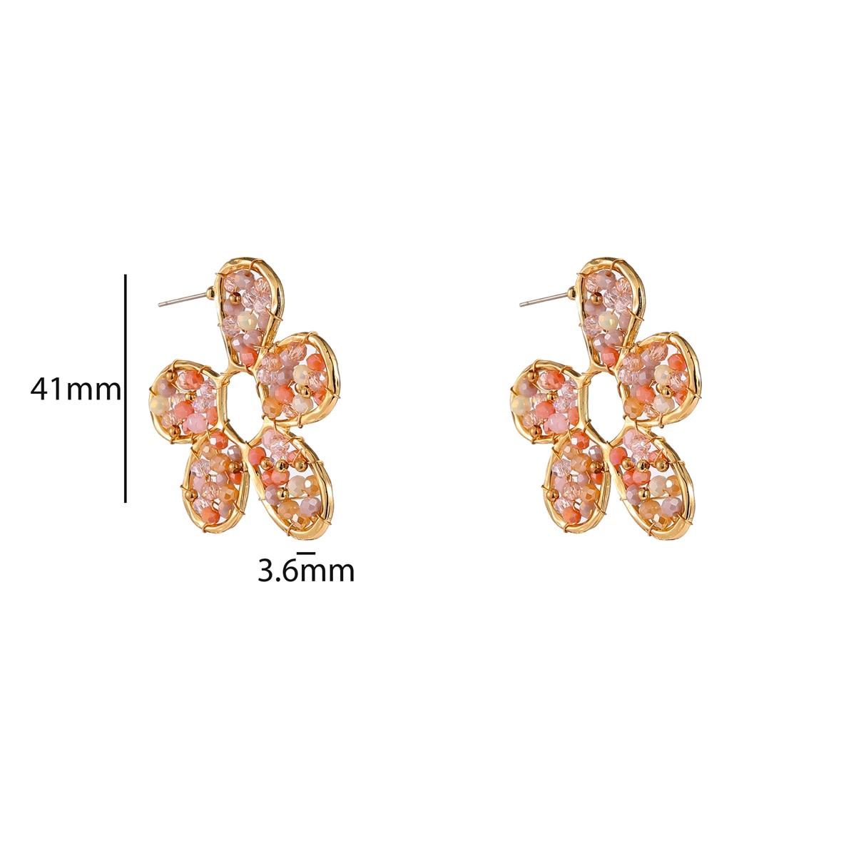 Oorstekers van stainless steel in bloemvorm, opgevuld met kleine beads. Door de ingevulde vorm vallen deze oorbellen net wat meer op en zijn ze makkelijk te combineren. De afmetingen van de oorbellen zijn 41 x 3,6 mm.