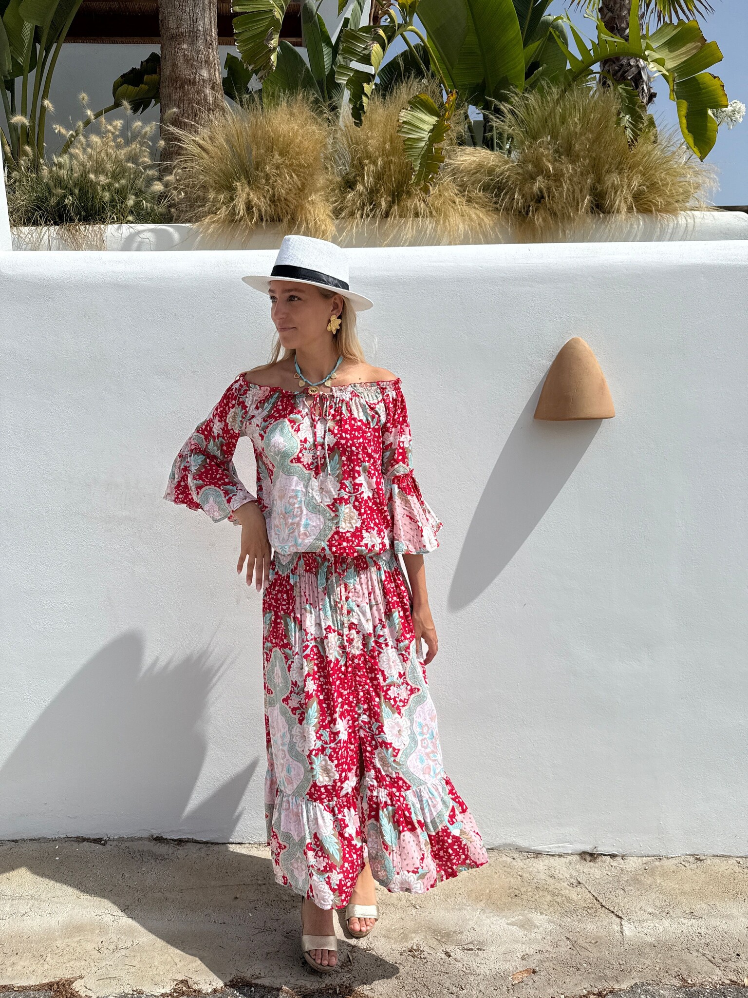 De rok Lorena Lovely van het merk Bindi is een luchtig, losvallend model in een kleurrijke print. De rok heeft een strook aan de onderzijde en een elastische band in de taille die kan worden aangetrokken. De rok is volledig doorgeknoopt en heeft een split aan de voorzijde.