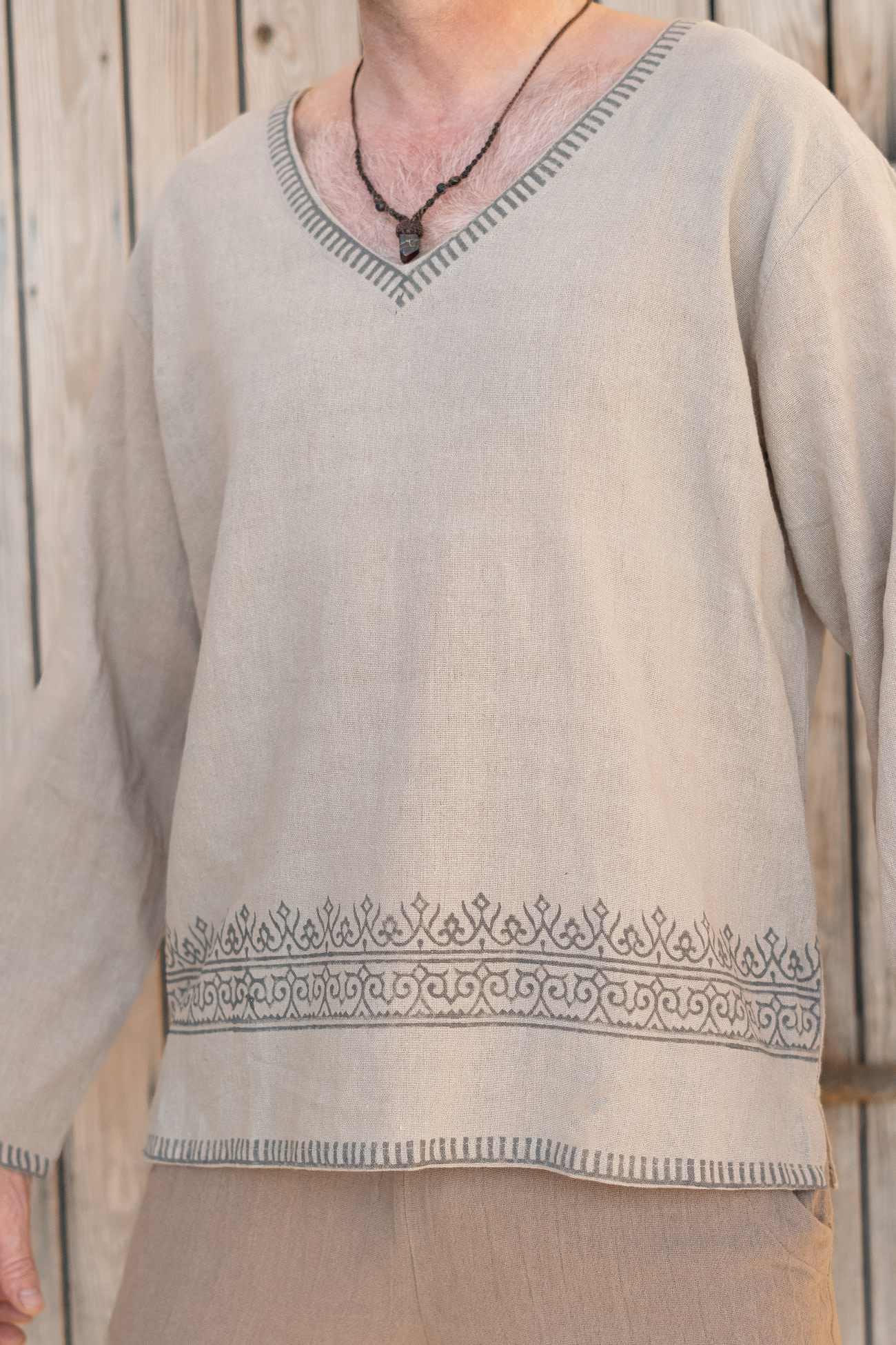 Product gegevens: Heeft een V-hals, hand gestempelde print aan de onderkant, gemaakt van een luchtige stof