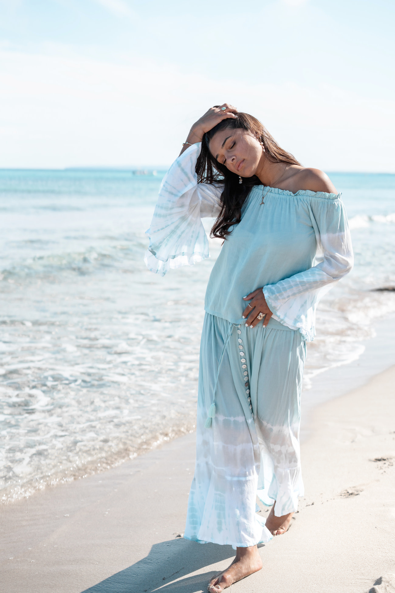 Met de Top Flair Waze Pale blue van ibzmode ben je klaar voor elk zomers feestje. Het natuurlijke materiaal zorgt voor een luchtige feel.