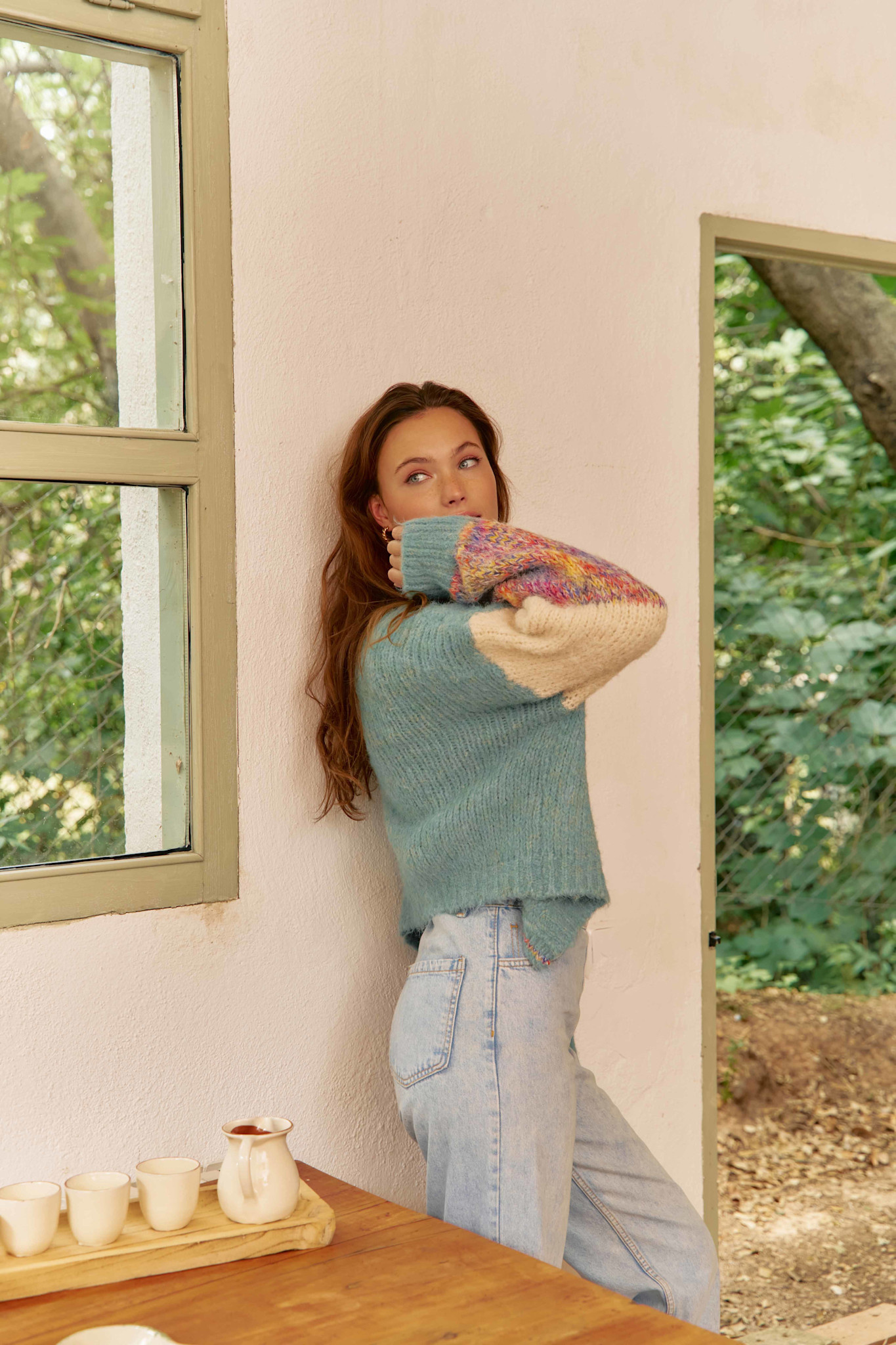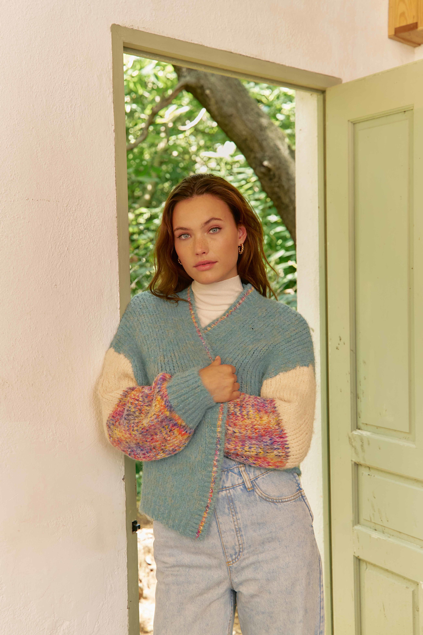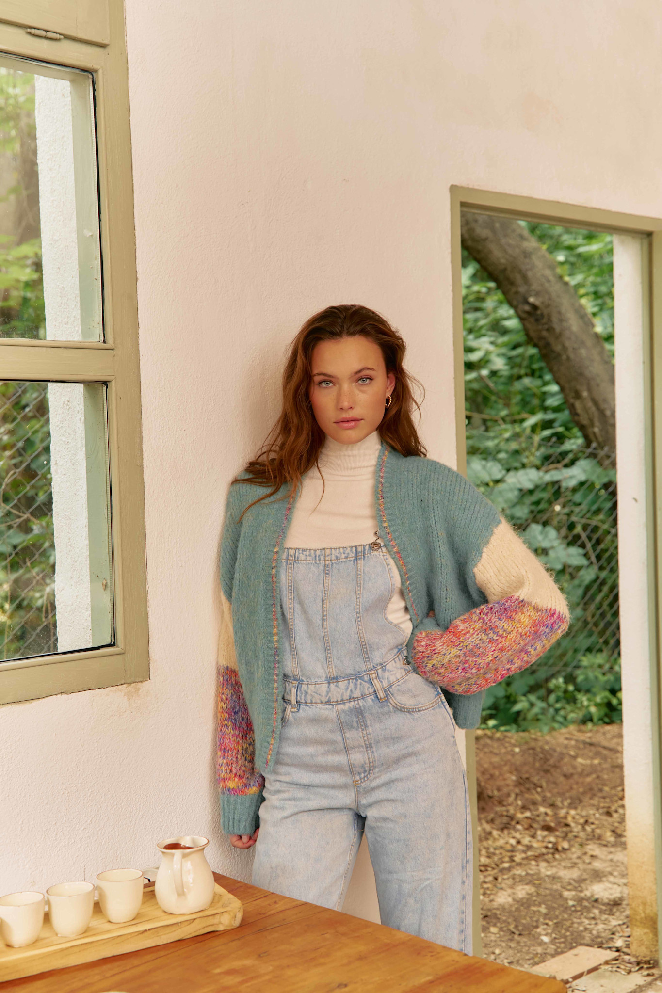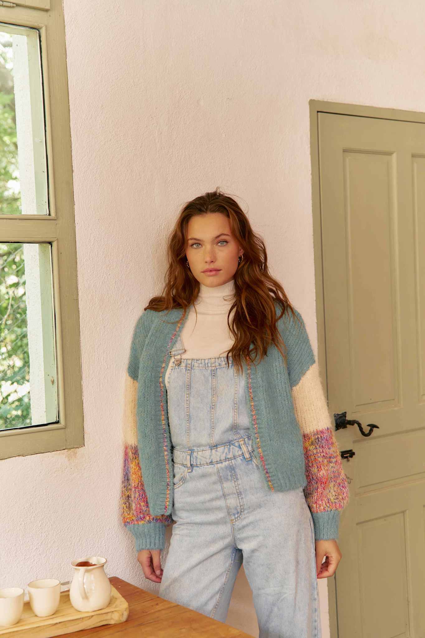 Het vest Autumn Whisper van het merk Jaase is een mintgroen vest met crème-kleurige en roze details. Het vest is een kort model.