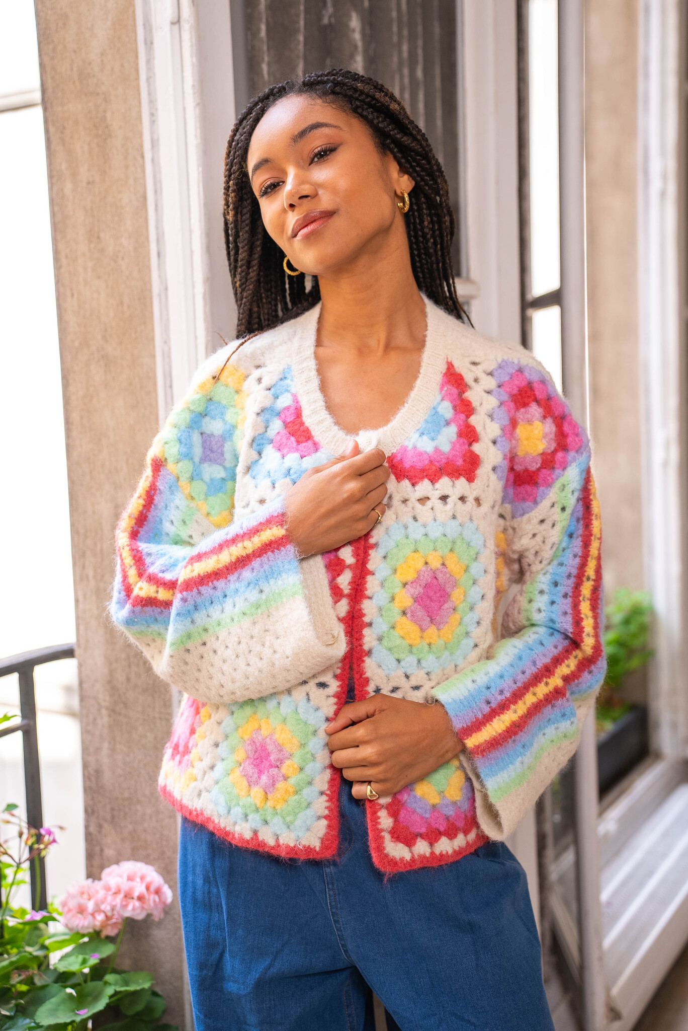Een kort kleurrijk vest dat met 1 knoopje in de hals gesloten kan worden. Het vest is van het merk Gold & Silver.