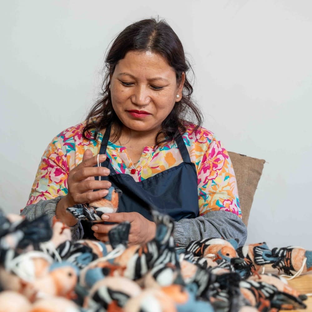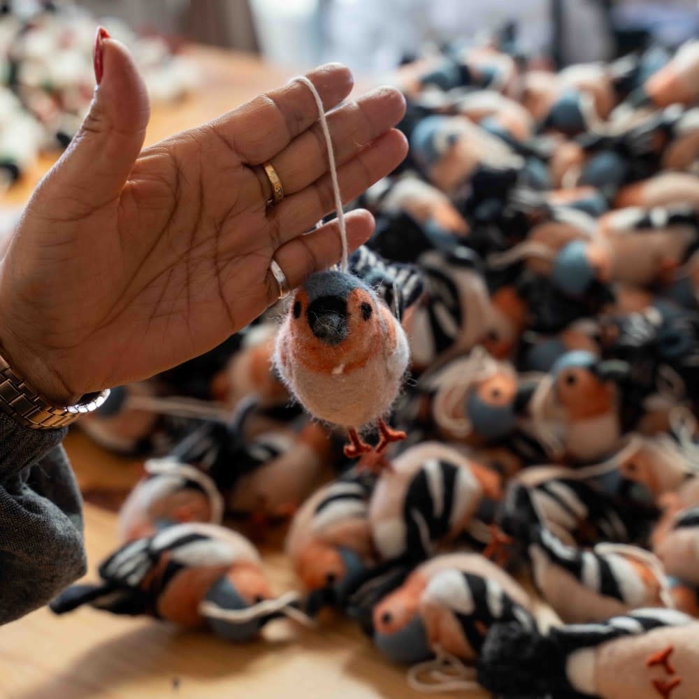 Deze kleurrijke vink van vilt is handgemaakt met veel aandacht voor detail. De vrolijke vogel voegt een speels en warm accent toe aan je interieur en is perfect als decoratie op een plank, tafel of in een seizoenshoekje.